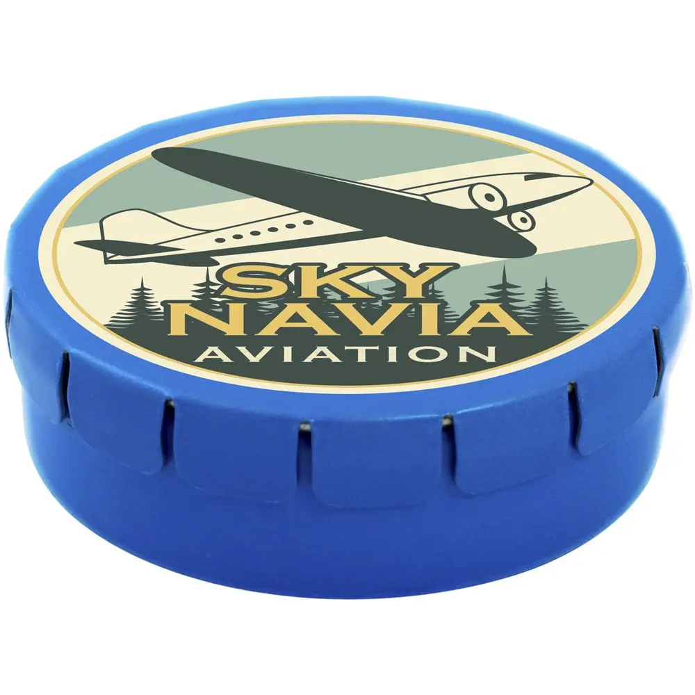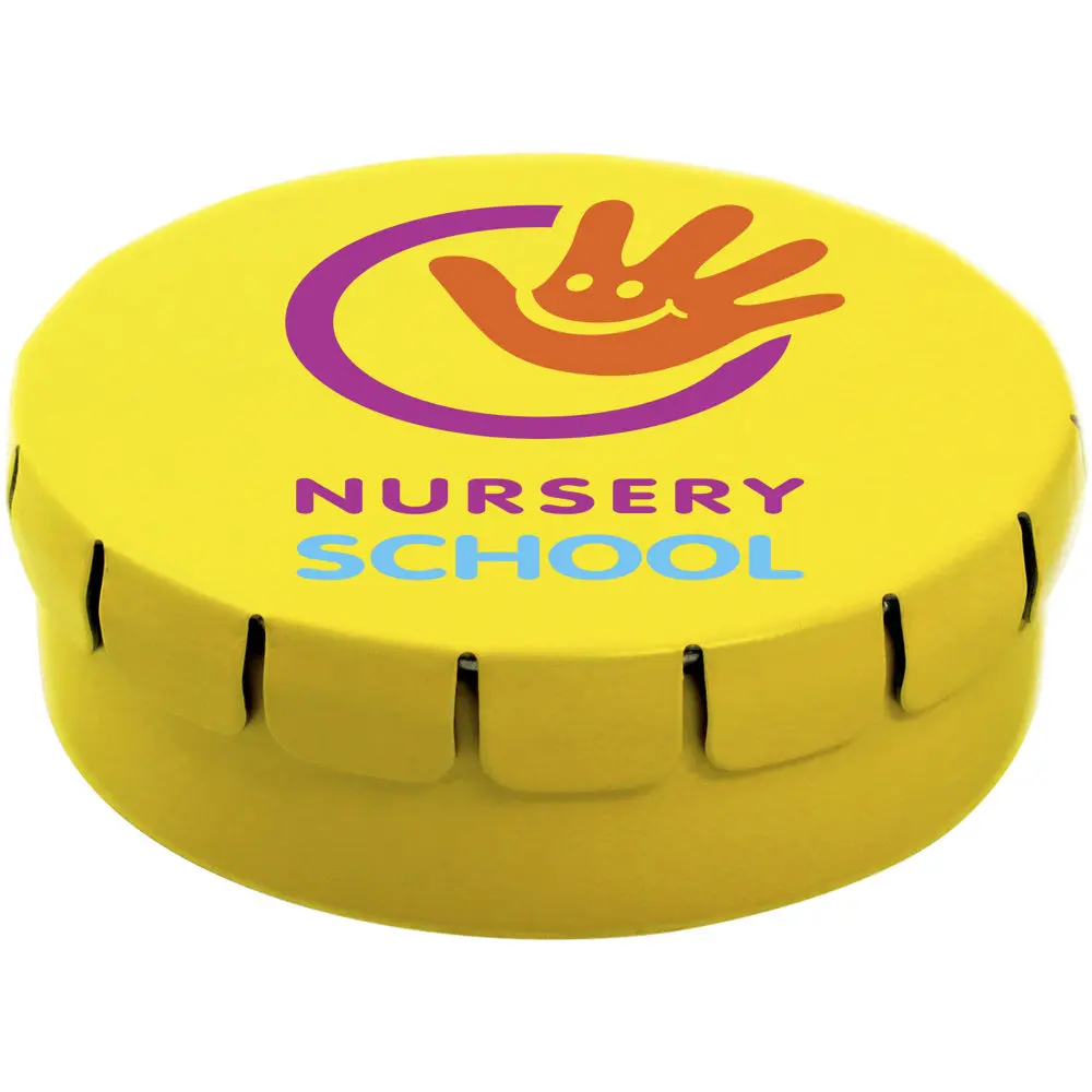 Ontdek ons Clic Clac suikervrije pepermunt blikje, een ideaal gepersonaliseerd relatiegeschenk voor uw marketingcampagnes en events. Dit compacte tinblikje (1,5 x Ø 4,5 cm) met handige drukopening biedt gemak en frisheid onderweg. Vul het met suikervrije pepermunt of diverse smaken zoals fruit, kaneel, citroen of chocolade voor een gezonde twist.