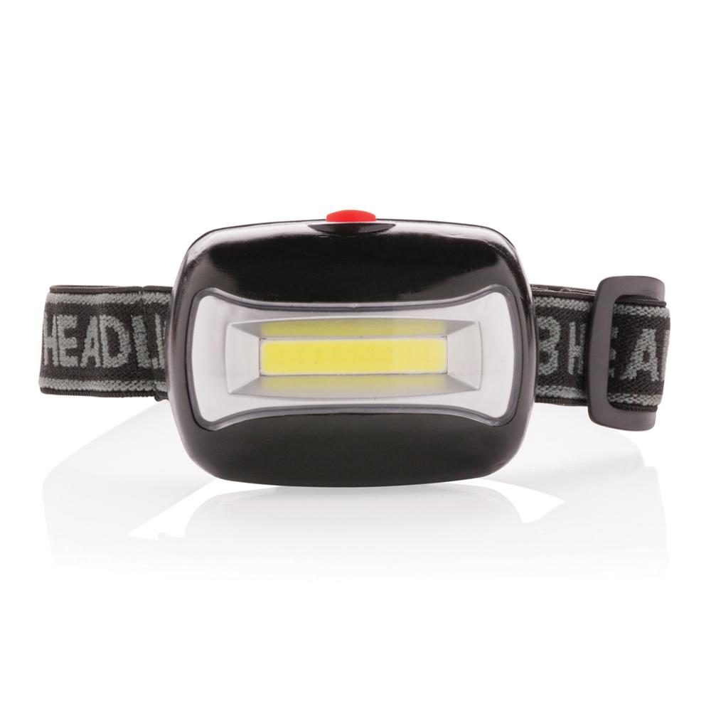 ABS hoofdlamp met ultra-heldere COB lamp. Inclusief verstelbare hoofdband om aan alle maten aan te passen. Inclusief batterijen.