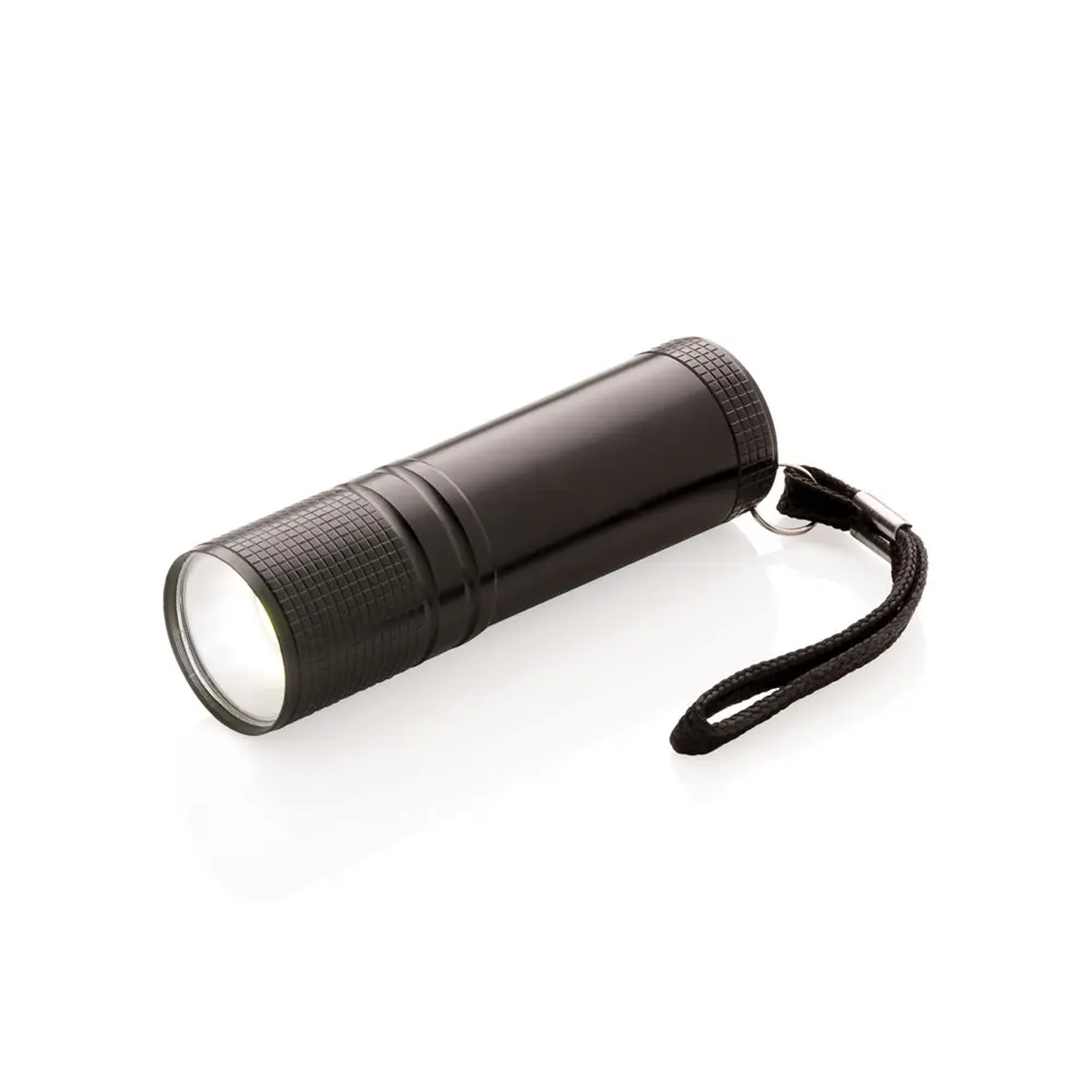 Ontdek onze COB-zaklamp, een compacte en superfelle lichtbron in zakformaat, ideaal als gepersonaliseerd relatiegeschenk. Met COB LED-technologie biedt deze zaklamp een veel helderder licht dan traditionele LED-lampen, terwijl hij tot 30% minder energie verbruikt voor een langere batterijduur. Inclusief 3x AAA-batterijen voor onmiddellijk gebruik, vervaardigd uit robuust aluminium en ABS-materiaal met een diameter van 24 mm.
