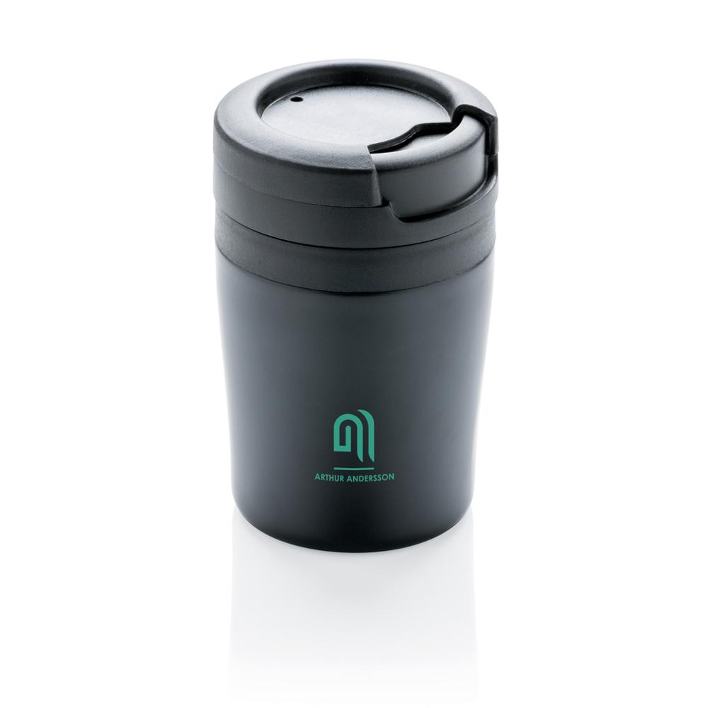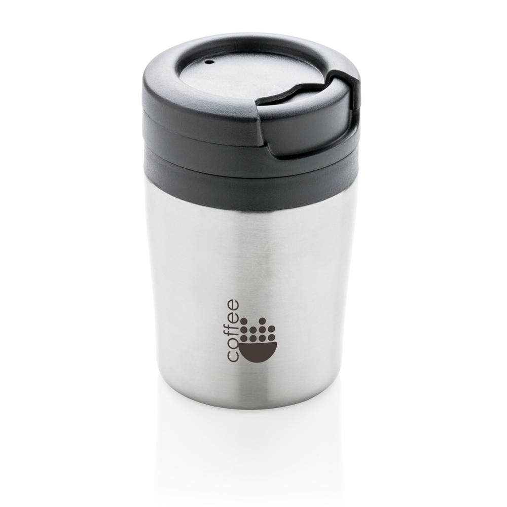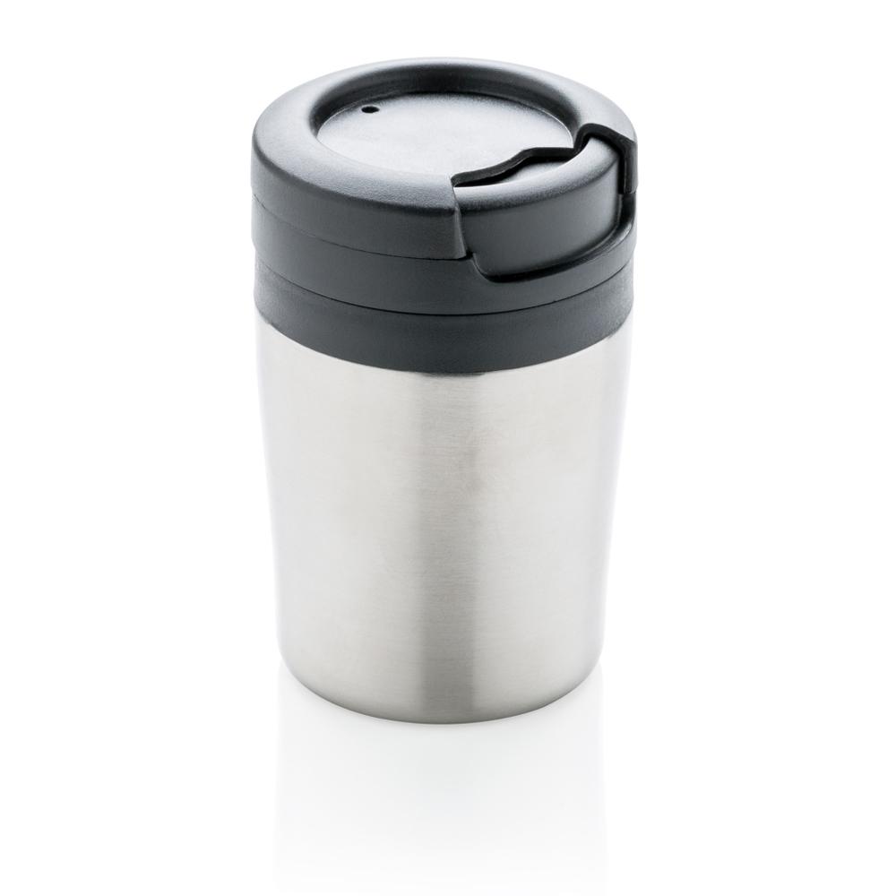 Less is more. Met zijn 8cm hoogte is dit de perfecte dubbel wandige mok voor je koffiemachine. PP binnenkant. Ideaal voor Ristretto, Espresso en Lungo koffie. Gemakkelijke draai-deksel. Kan niet in de vaatwasser. Inhoud 160ml. Geregistreerd ontwerp®