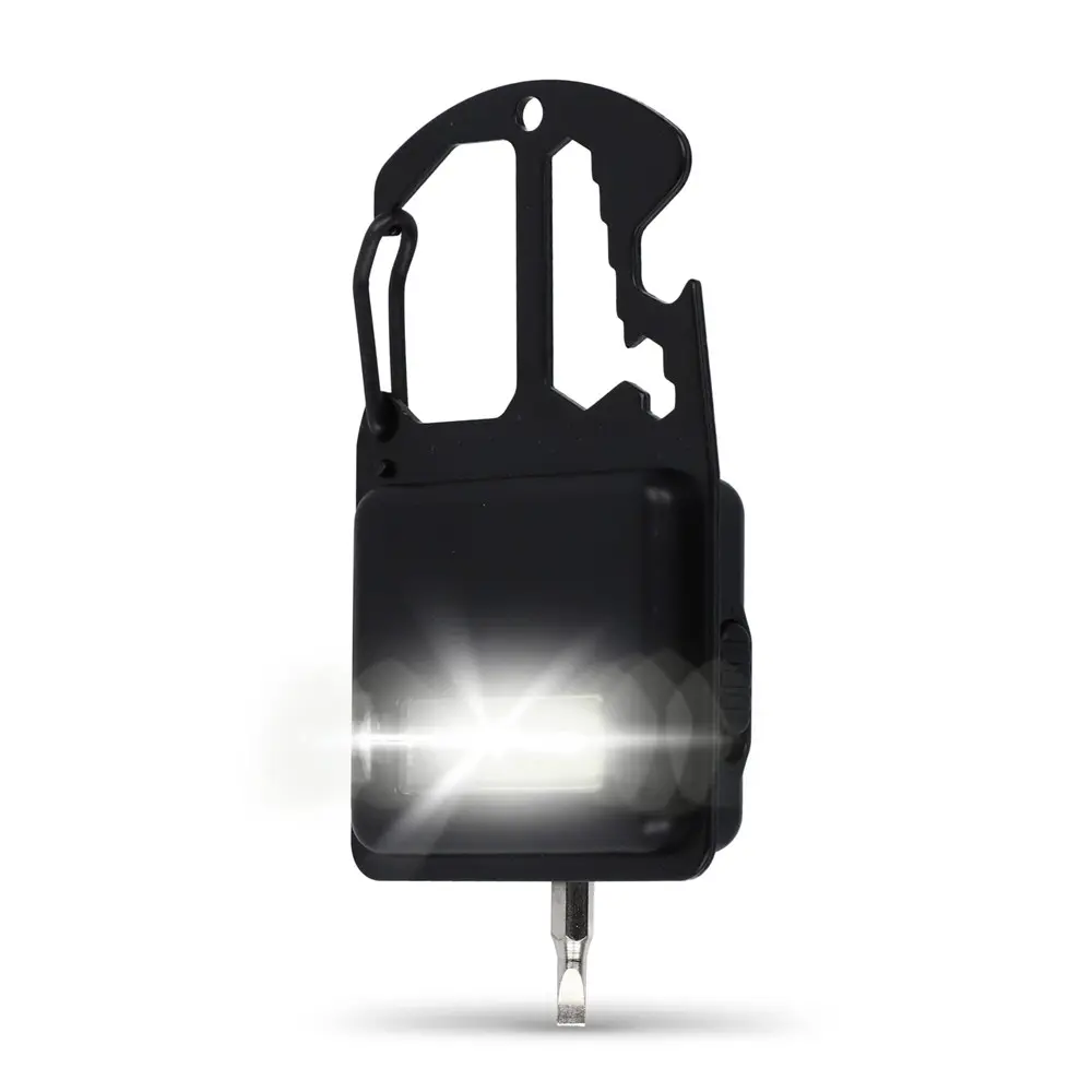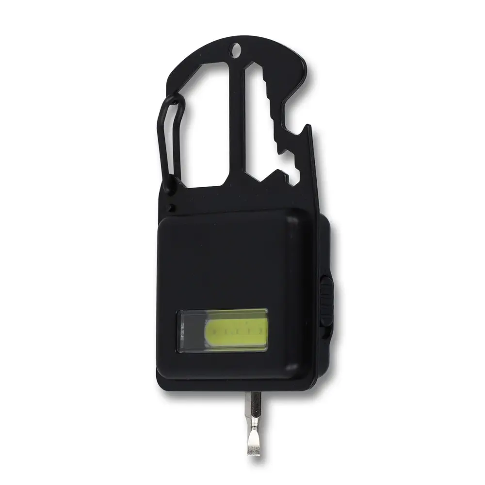 Dit compacte multigereedschap met zeven praktische functies is het ideale gepersonaliseerde relatiegeschenk voor uw marketingcampagnes of events. Bevestig het eenvoudig aan een tas of riem met de klem, of gebruik de magneet voor handsfree plaatsing op stalen oppervlakken. Geniet van de voordelen van een flesopener, moersleutel, krachtige COB-lamp, sterpuntschroevendraaier en platte schroevendraaier – allemaal in zakformaat voor dagelijks gebruik.
