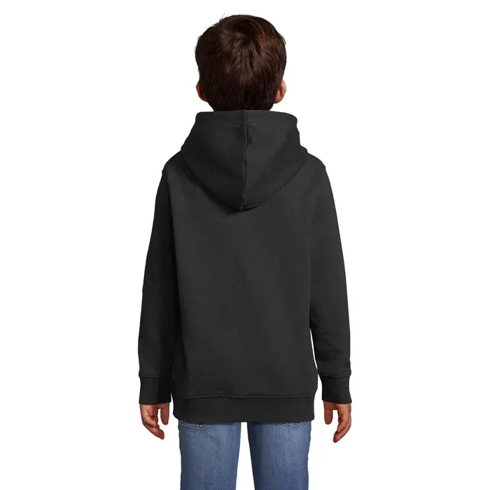 De CONDOR KIDS capuchon is een kwalitatief sweatshirt speciaal ontworpen voor kinderen, ideaal als gepersonaliseerd relatiegeschenk voor uw marketingacties of events. Gemaakt van 80% katoen en 20% GRS-gecertificeerd gerecycled polyester, biedt het een zachte, comfortabele pasvorm met ingewerkte mouwen, geribbelde manchetten en onderkant, een praktische kangoeroezak en een gevoerde capuchon. De relaxte snit zorgt voor bewegingsvrijheid, terwijl de jersey binnenvoering in de nek extra comfort toevoegt.