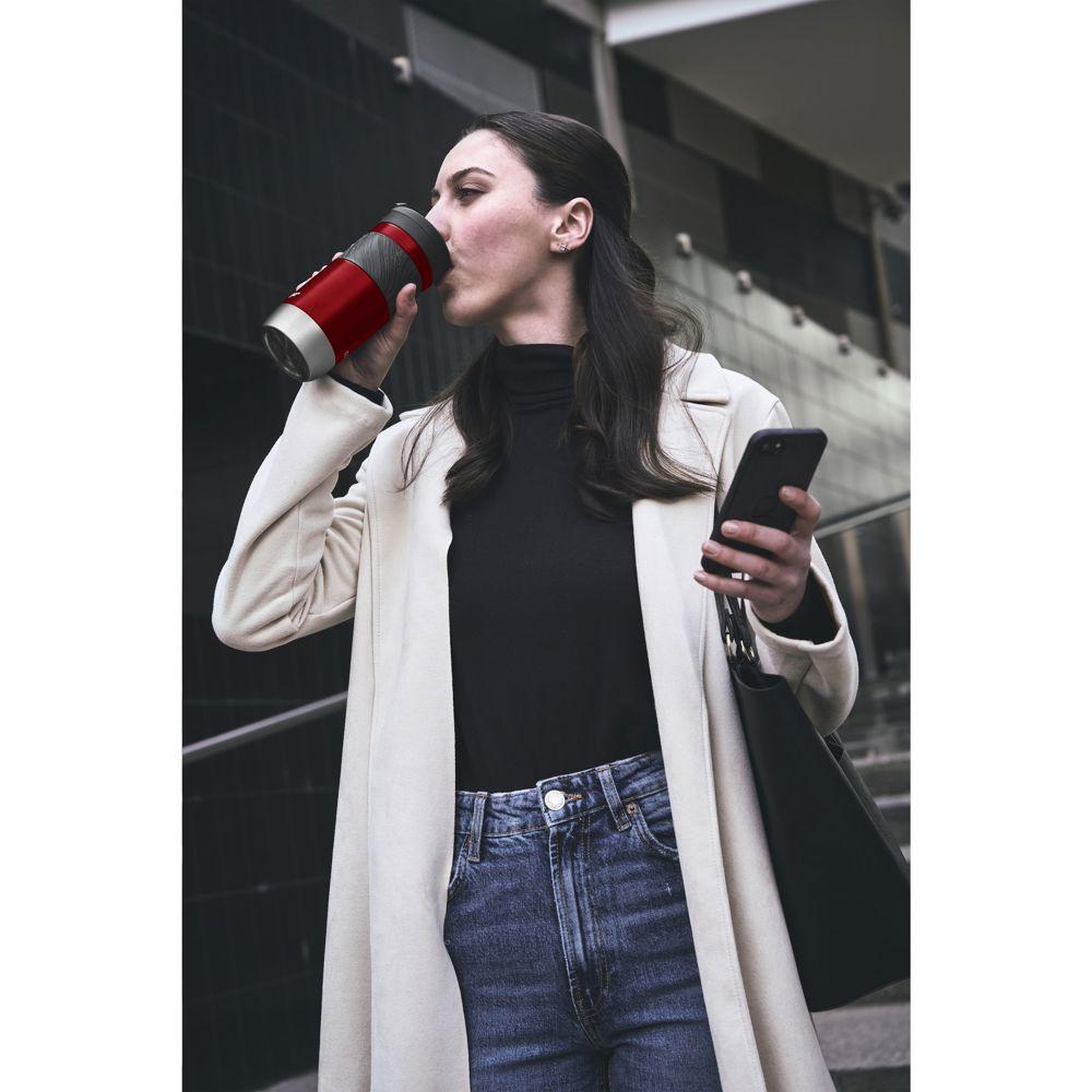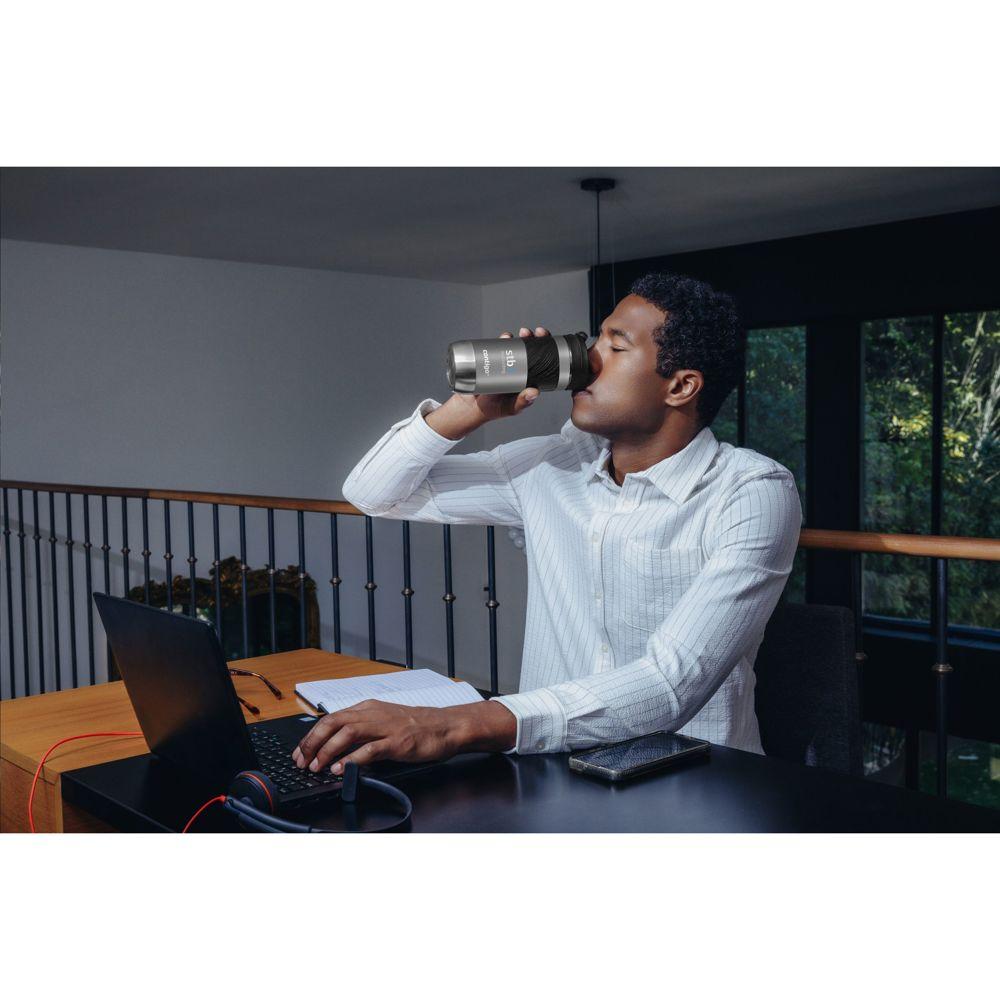 De royale rubberen antislip-grip zorgt voor stevige houvast, perfect tijdens events of onderweg. Met de SNAPSEAL™-drinkuit bedien je hem makkelijk met één hand: klik omhoog om te drinken en omlaag om te sluiten. Zo ben je 100% mors- en lekvrij, zelfs als je hem uitdeelt aan klanten.