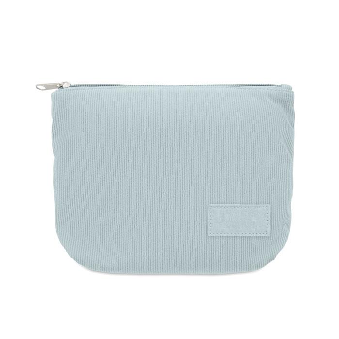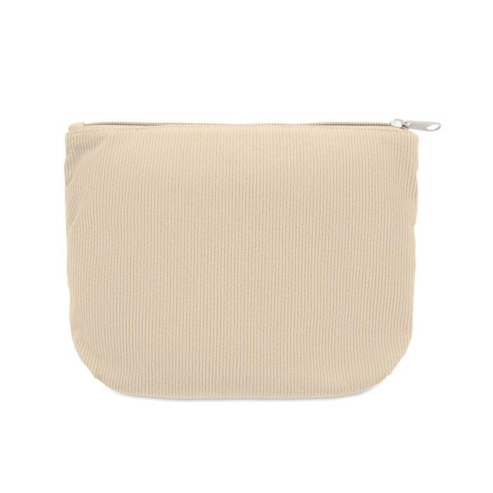 Dit cosmeticatasje van polyester ribfluweel met polyester voering weegt 220 g/m² en voelt zacht en stijlvol aan. Je personaliseert het eenvoudig met jouw logo, wat het ideaal maakt als relatiegeschenk voor events of promotie.