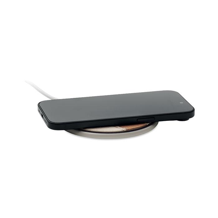 Ontdek deze stijlvolle draadloze oplader gemaakt van gerecycled ABS met natuurlijke details van katoen en kurk. Sluit hem eenvoudig aan op je computer via USB, leg je smartphone erop en geniet van snel opladen met 15W vermogen (DC 9V/1,67A).