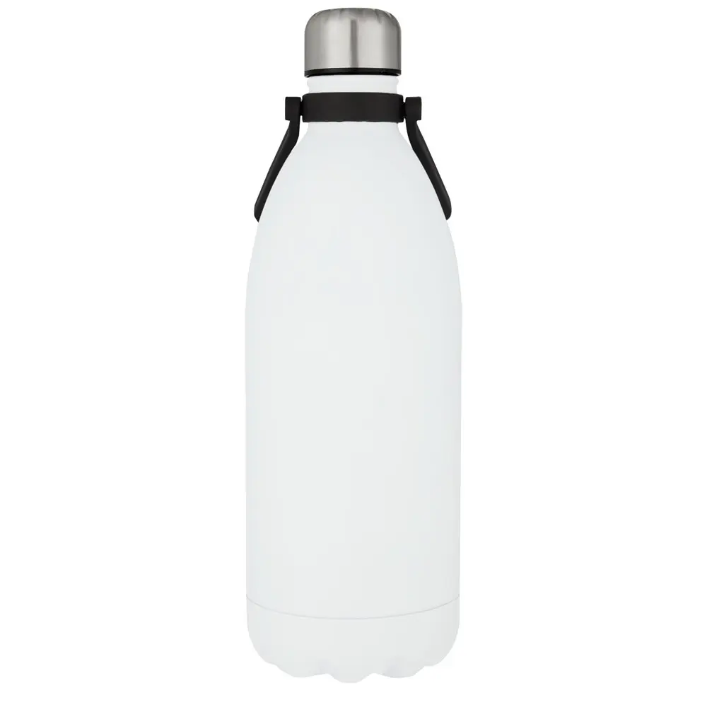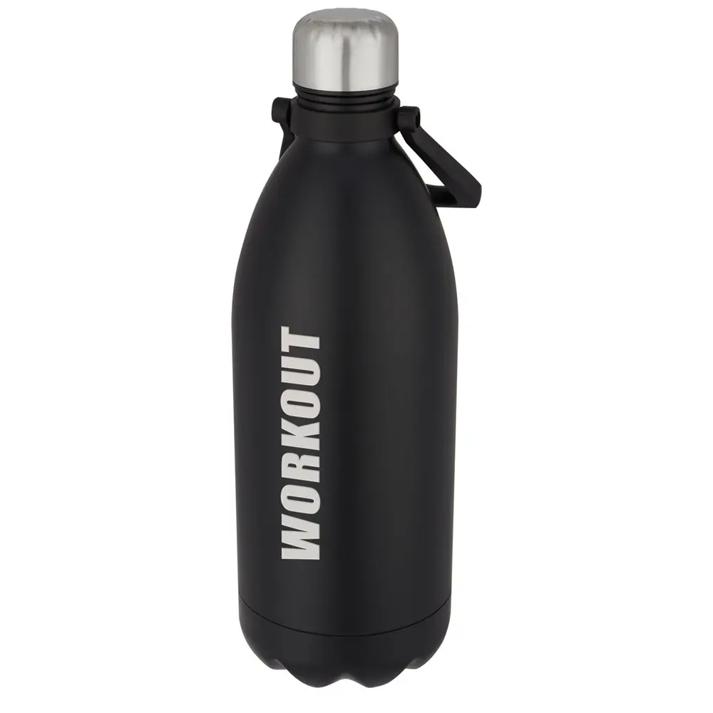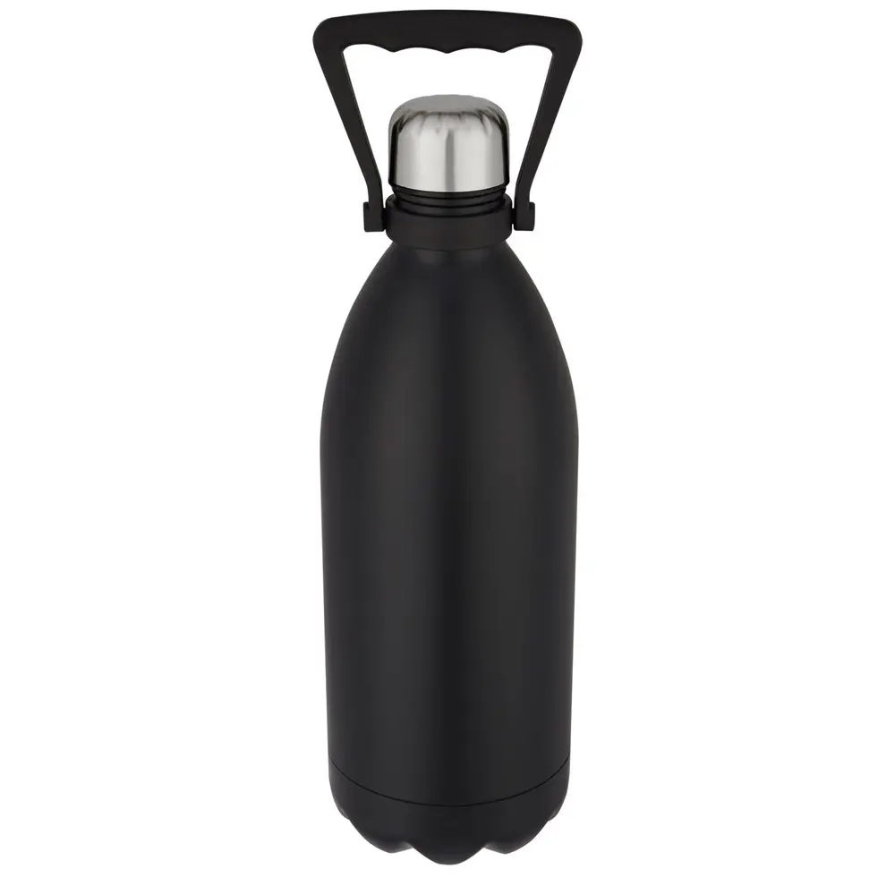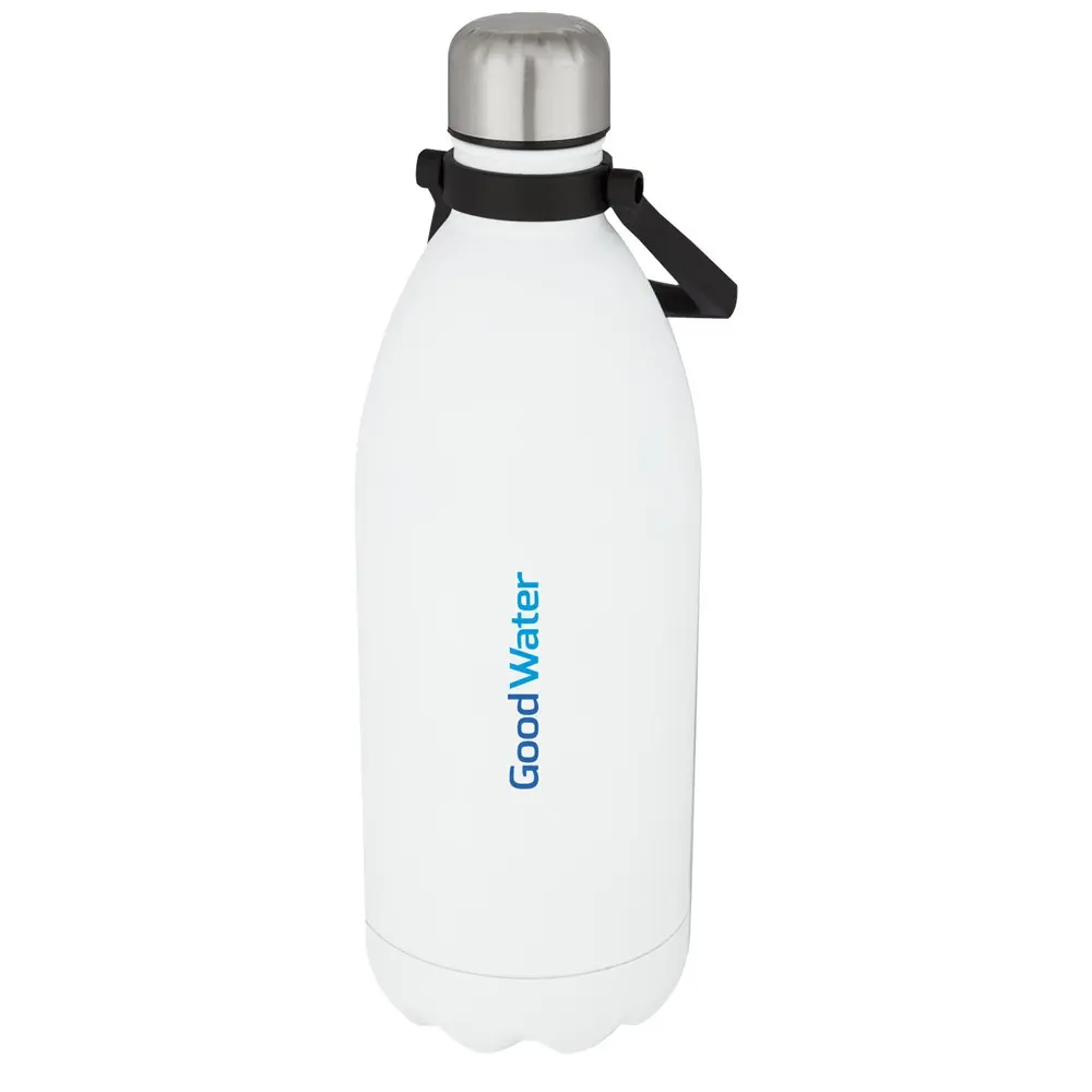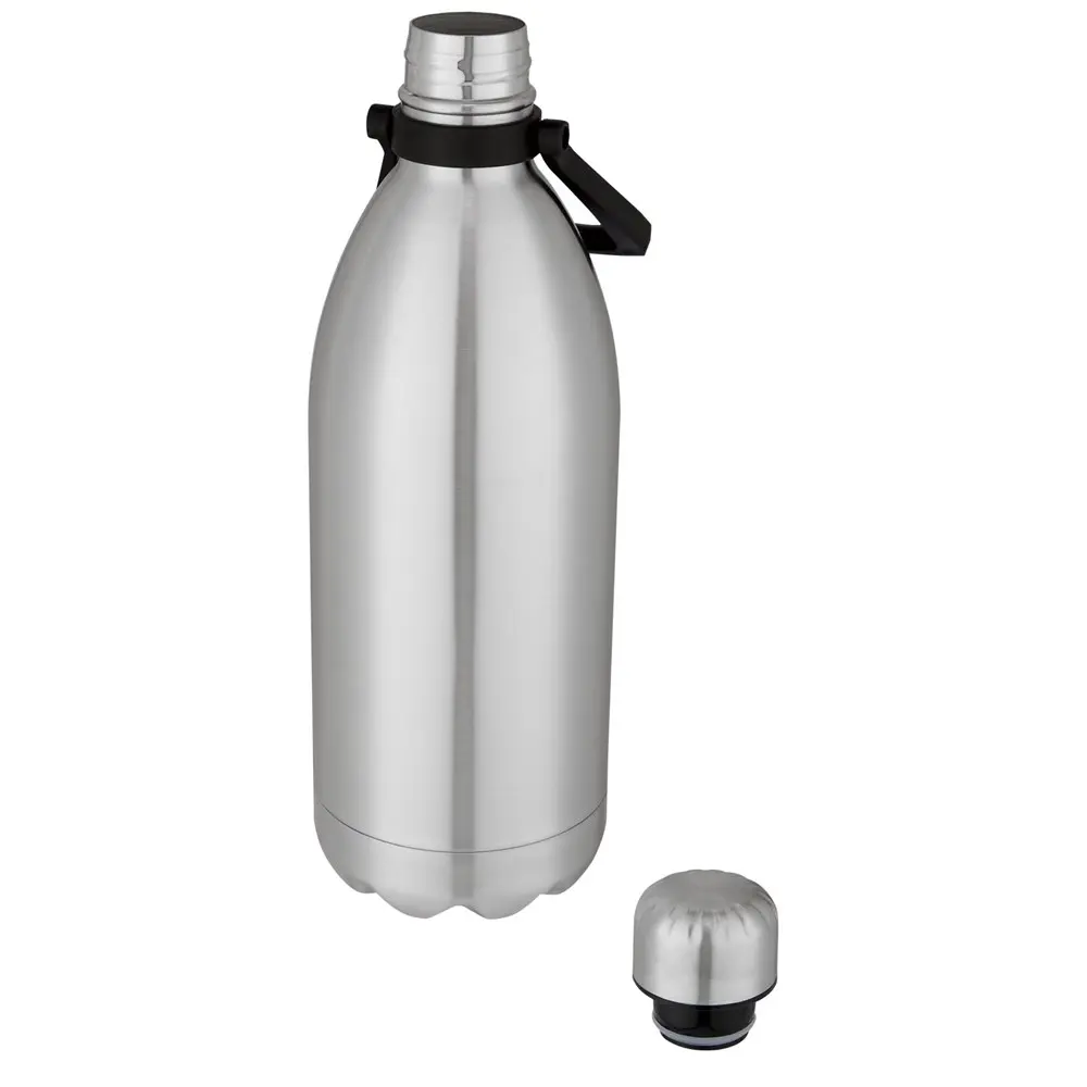 Ontdek de Cove 1,5 liter vacuümgeïsoleerde roestvrijstalen fles, ideaal als gepersonaliseerd relatiegeschenk met logobedrukking voor uw marketingcampagnes of events. Deze extra grote drinkfles biedt een iconisch design met comfortabel handvat voor eenvoudig transport, perfect om uit te delen aan uw klanten en relaties.