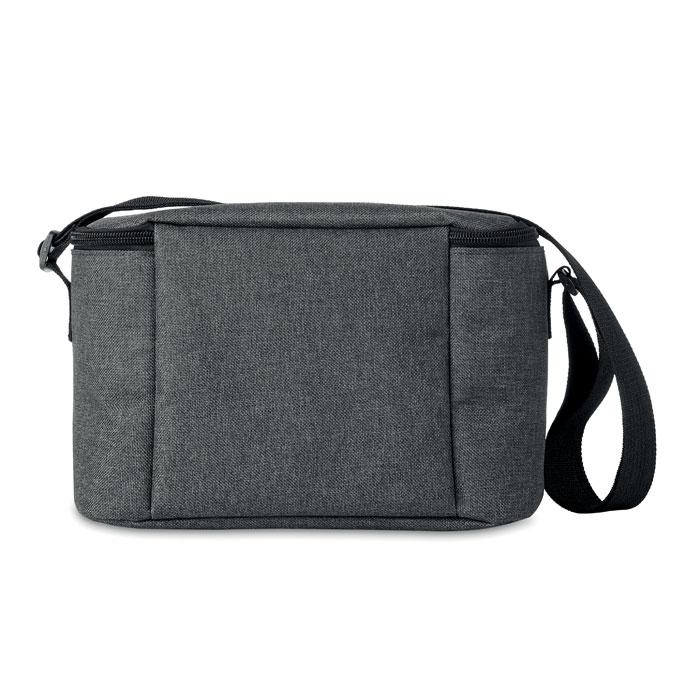 Duotone 600D RPET koeltas geschikt voor 6 blikjes. Isolatiemateriaal: 0,15mm PEVA + 3mm foam.