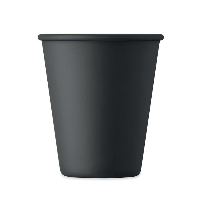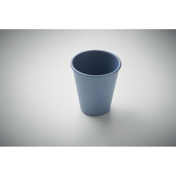 Herbruikbare enkelwandige beker in PLA maïs. Inhoud: 200ml. Omdat dit een enkelwandige mok is, kan er nog warmteoverdracht plaatsvinden.