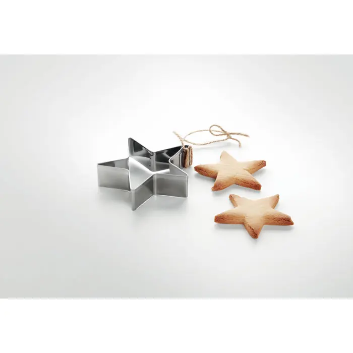 Ontdek onze set van drie roestvrijstalen koekvormpjes, voorzien van een stevig jute ophangkoord. Deze veelzijdige vormpjes lenen zich perfect voor het bakken van lekkere koekjes en kunnen tevens dienen als charmante kerstboomversiering. Als uw ideale partner in gepersonaliseerde relatiegeschenken, bedrukt uw logo erop om uw merk op een creatieve en memorabele manier te promoten.