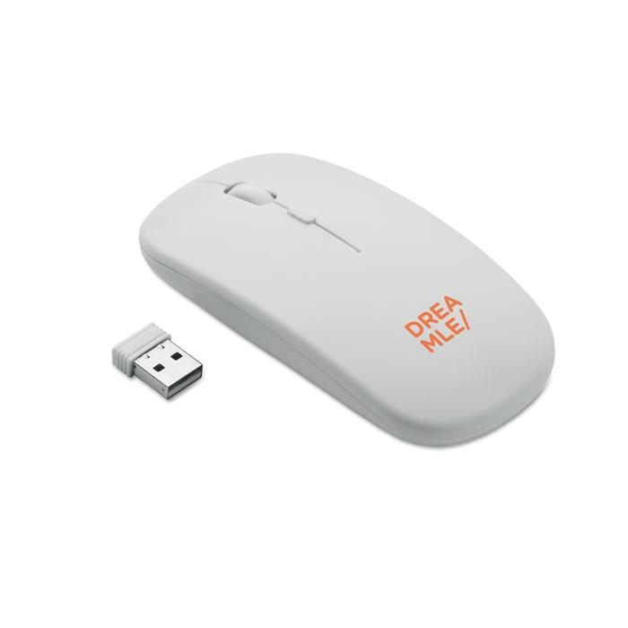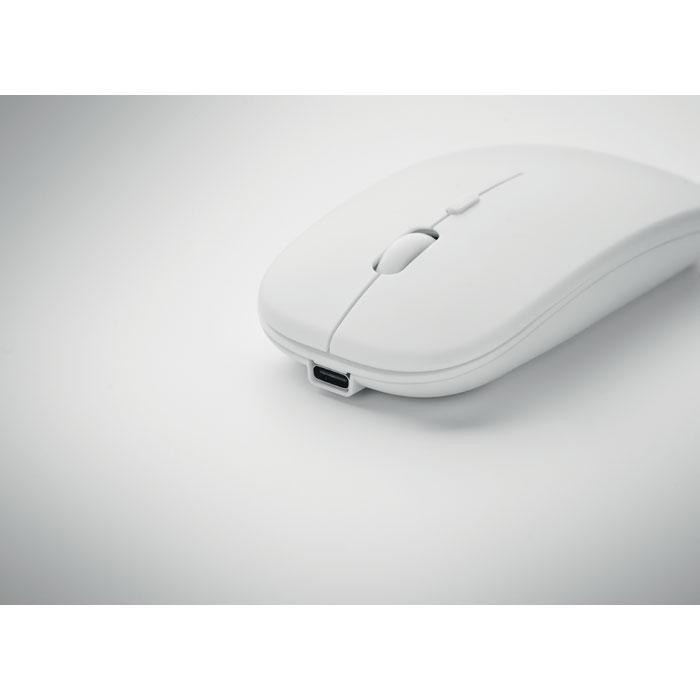 Draadloze optische muis van gerecycled ABS met oplaadbare USB-batterij van 500 mAh.