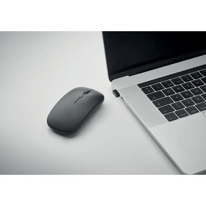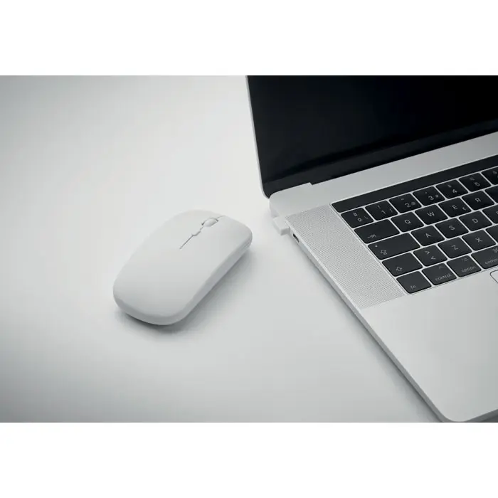 Ontdek een stijlvolle en duurzame optie voor uw relatiegeschenken. Deze draadloze optische muis is vervaardigd uit gerecycled ABS-materiaal, wat bijdraagt aan een milieubewuste keuze voor uw onderneming. Met de ingebouwde oplaadbare USB-batterij van 500 mAh geniet u van langdurig gebruik zonder frequent opladen, ideaal voor uw klanten tijdens events of in het dagelijks zakenleven.