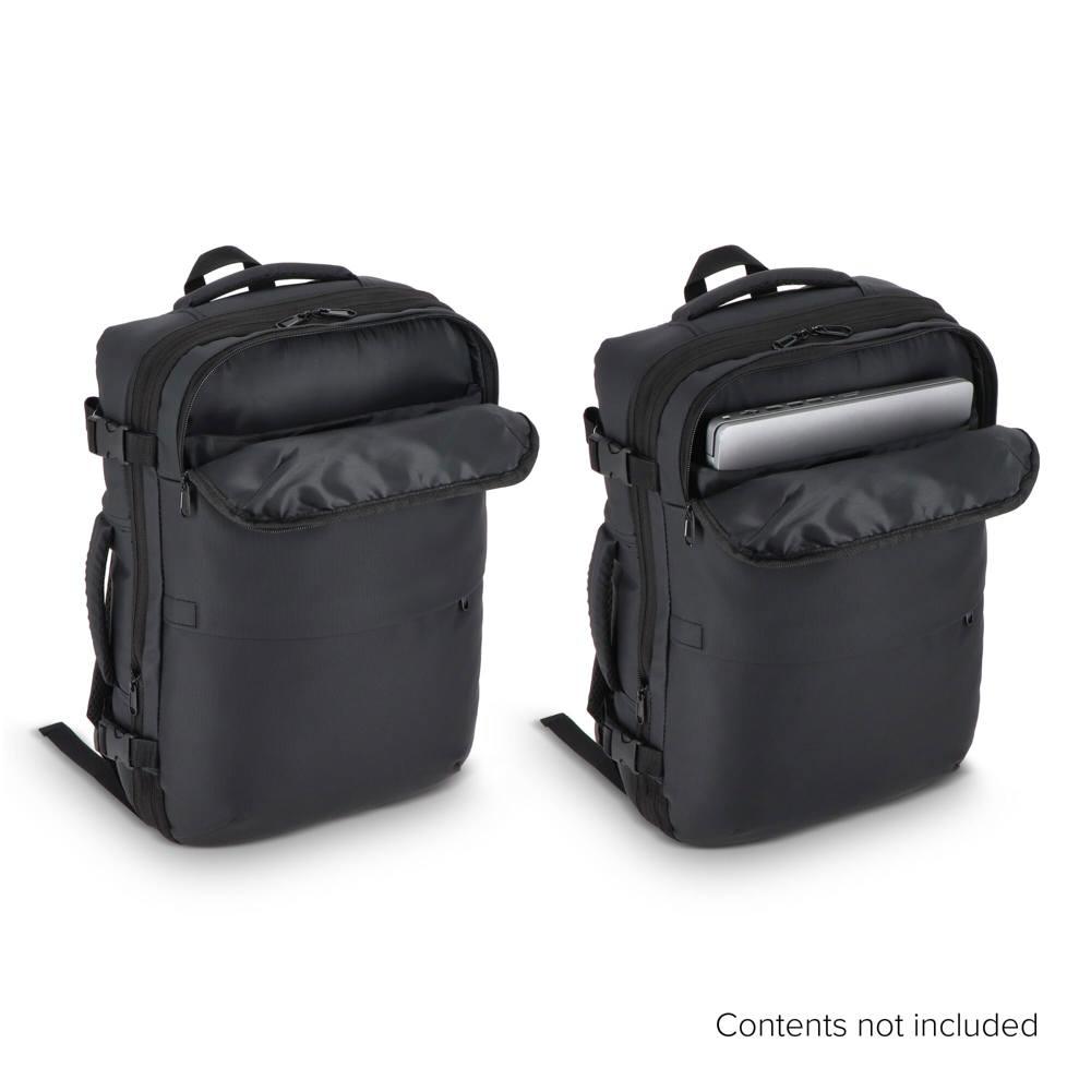 Het grote voorvak biedt een gewatteerd laptopvak en klein ritsvakje voor snelle toegang. Het hoofdvak opent 180° voor moeiteloos inpakken, met handige meshvakken en het vacuümvak. Uitbreidbaar via rits past hij perfect binnen carry-on limieten van budgetluchtvaartmaatschappijen.