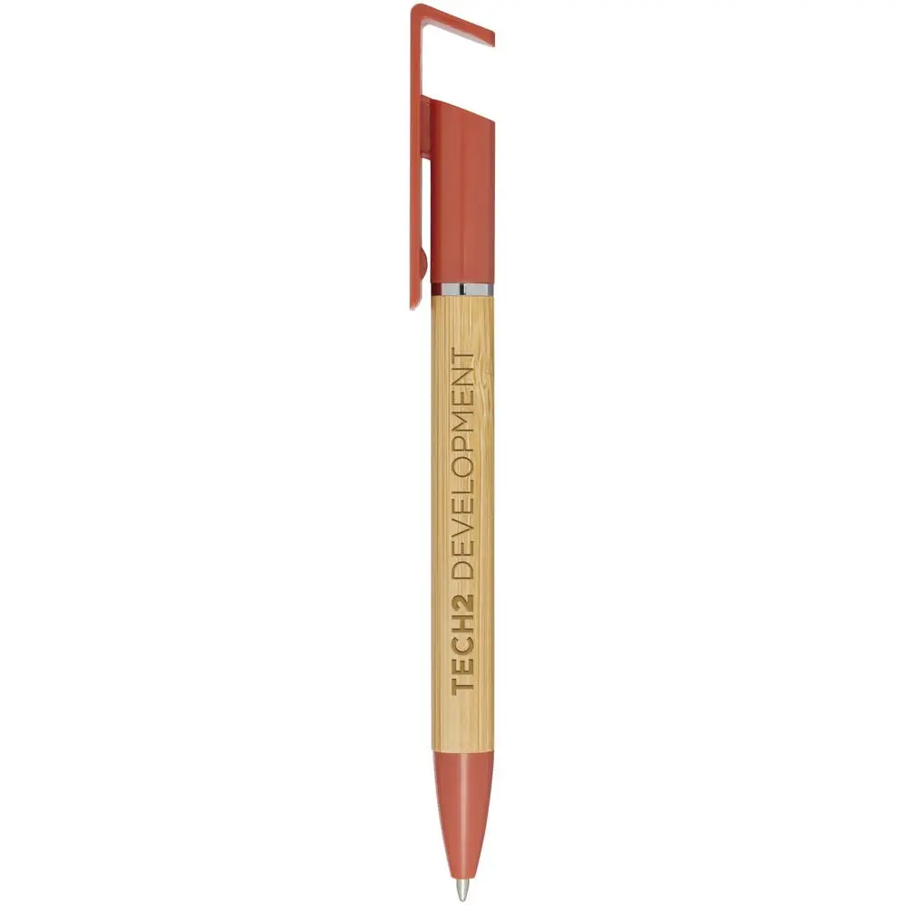 De Delfina telefoonhouderpen combineert functionaliteit met duurzaamheid, ideaal als gepersonaliseerd relatiegeschenk voor uw marketingcampagnes of events. Deze slimme bamboe pen dient niet alleen als schrijfinstrument, maar fungeert ook als handige houder voor uw smartphone, perfect voor op bureau of tijdens vergaderingen.