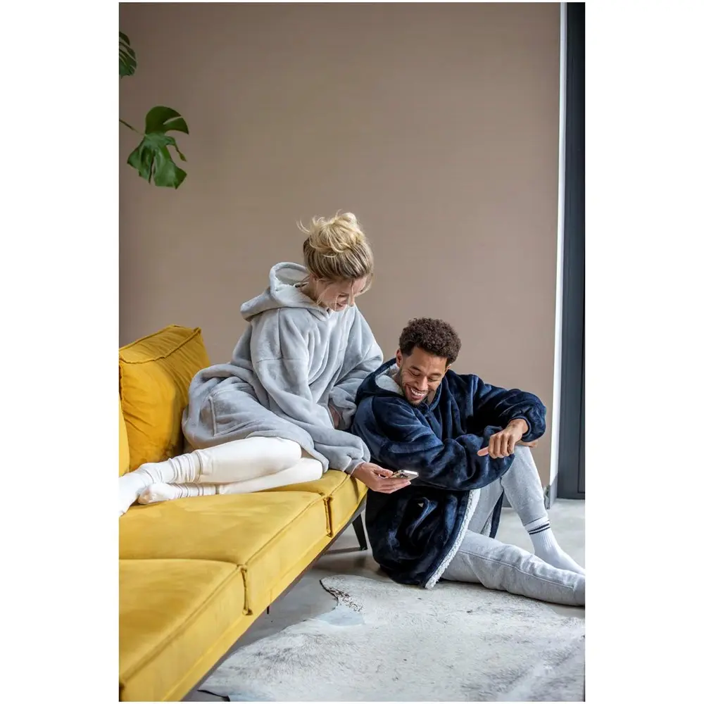 Voor marketingprofessionals en eventorganisatoren biedt deze hoodie deken een praktisch en stijlvol item dat u in grote aantallen kunt laten bedrukken. Het oversized ontwerp bevordert herhaalde blootstelling aan uw logo, ideaal voor branding. Met de focus op duurzaamheid sluit het naadloos aan bij hedendaagse waarden, waardoor uw bedrijf zich onderscheidt als verantwoord en attent.