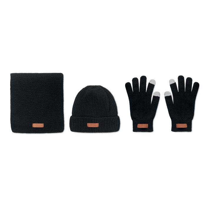 3-delige winterset. Inclusief RPET muts, sjaal en touchscreen handschoenen met label om te bedrukken.