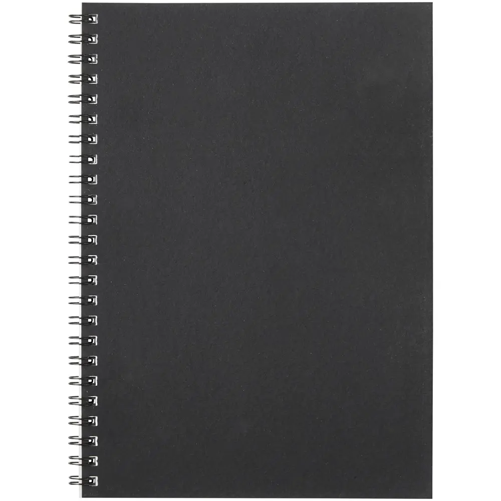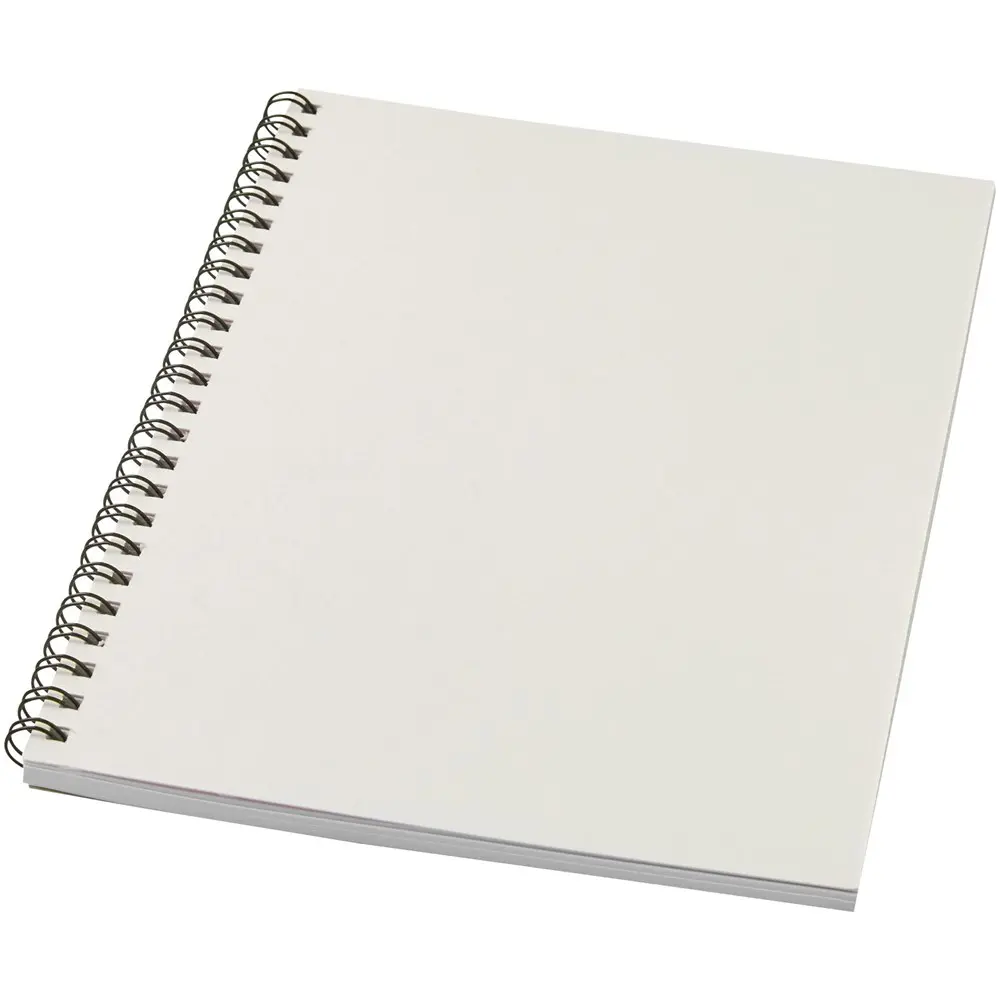 Ontdek ons Desk-Mate® A5 spiraalnotitieboek, ideaal als gepersonaliseerd relatiegeschenk voor uw marketingcampagnes of events. Met 50 vellen blanco 80 g/m² gerecycled papier en een stevige 320 g/m² kartonnen cover biedt dit notitieboek optimale schrijfcomfort en duurzaamheid. Personaliseer het eenvoudig met uw logo via bedrukking, en pas de pagina's aan naar gelinieerd, geruit of gestippeld formaat voor maximale veelzijdigheid.