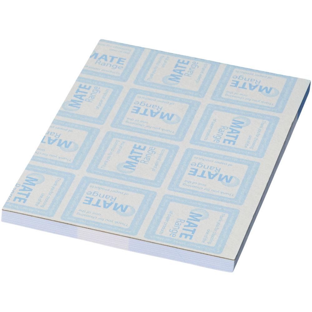 Wit A7 Desk-Mate® kladblok. Standaardmodel Inclusief 50 vel 80 g/m2 papier. Full colour bedrukking beschikbaar op elk vel. Beschikbaar in 3 formaten (25/50/100 vellen).
