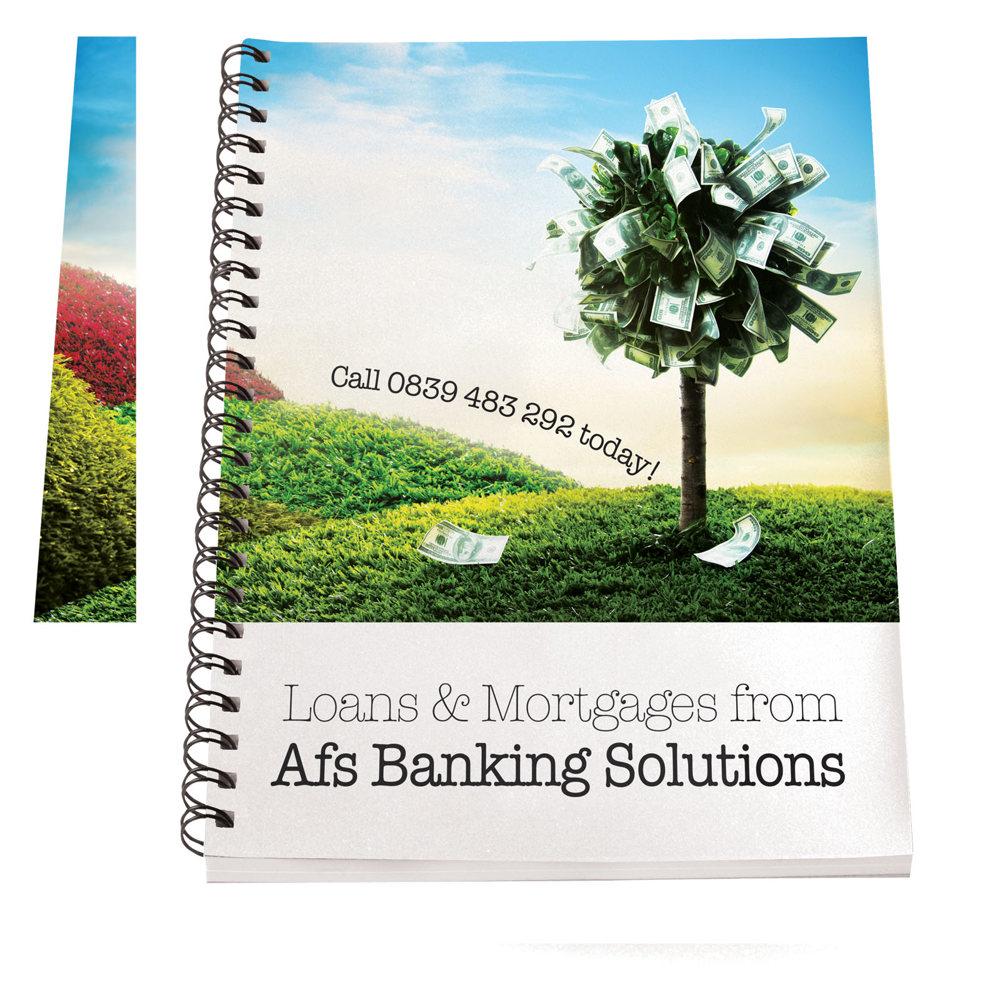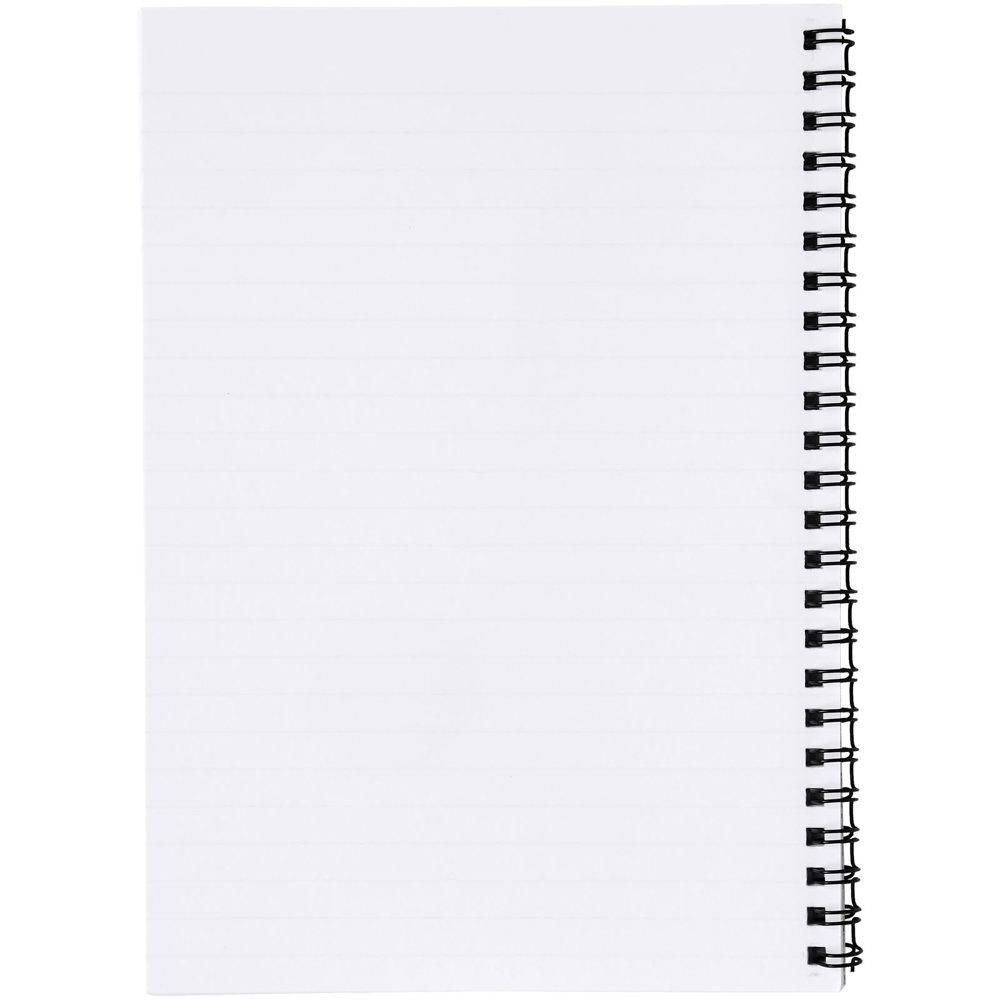Desk-Mate® A4 spiraalnotitieboek. Inclusief 50 vel blanco papier (80 g/m2) en voorkant (450 g/m2). De omslag is scheur- en watervast. Je kunt de pagina's van dit veelzijdige notitieboek aanpassen met elk gewenst ontwerp - dus of je nu gelinieerd papier, vierkanten of stippen wilt - alles is mogelijk!