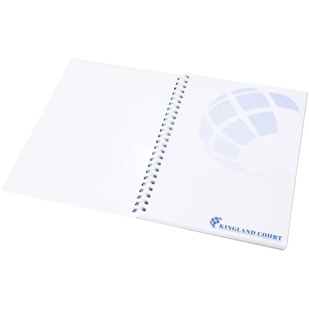 Dit veelzijdige notitieboek is ideaal als gepersonaliseerd relatiegeschenk voor uw bedrijf. U kunt de pagina's eenvoudig aanpassen met gelinieerd, geruit of gestippeld papier, afgestemd op uw behoeften. De robuuste omslag beschermt de inhoud en zorgt voor een professionele uitstraling. Dankzij de spiraalbinding ligt het boek plat open, wat notities maken vergemakkelijkt. Het FSC-label benadrukt uw engagement voor verantwoord ondernemen, wat uw merk versterkt bij klanten en partners.