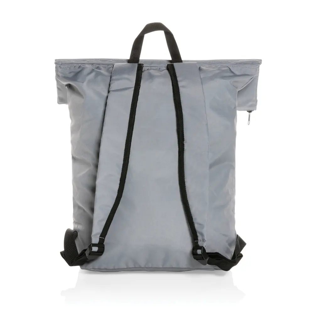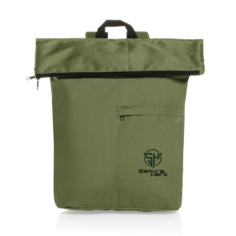 Ontdek de Dillon lichtgewicht opvouwbare rugzak, ideaal als gepersonaliseerd relatiegeschenk voor uw bedrijf. Met zijn slimme oprolbare ontwerp vouwt deze rugzak eenvoudig samen in het bijbehorende zakje, wat hem perfect maakt voor ruimtebesparende promotie op events of reizen. Vederlicht en met een inhoud van 20 liter biedt hij royaal volume zonder extra gewicht toe te voegen aan uw bagage.