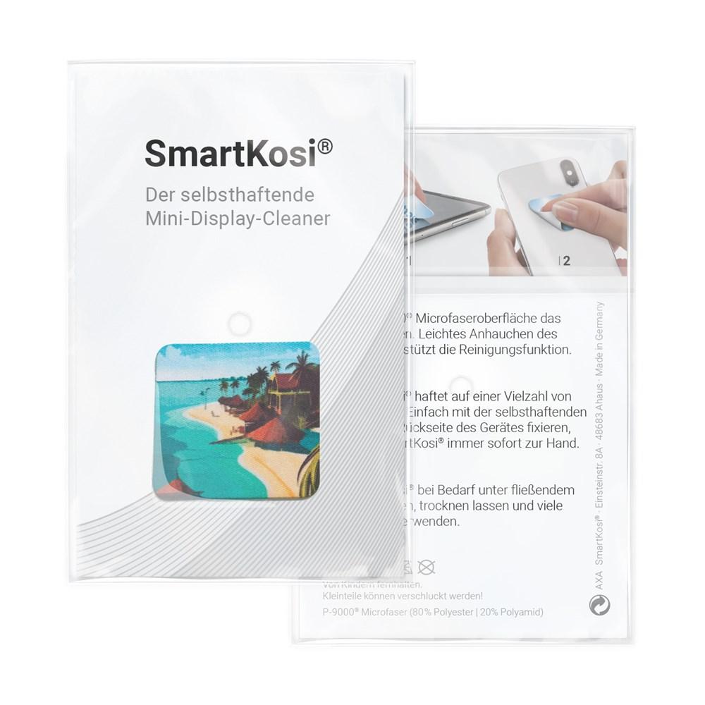 Altijd binnen handbereik kan hij snel van de achterkant van de smartphone worden losgemaakt en zorgt hij voor streepvrije reinigin van het display, zonder krassen achter te laten. Of het nu met logo of foto is – de P-9000® HD microvezel garandeert de beste opdrukkwaliteit. De SmartKosi® wordt geleverd incl. een individueel bedrukte inlegkaart.