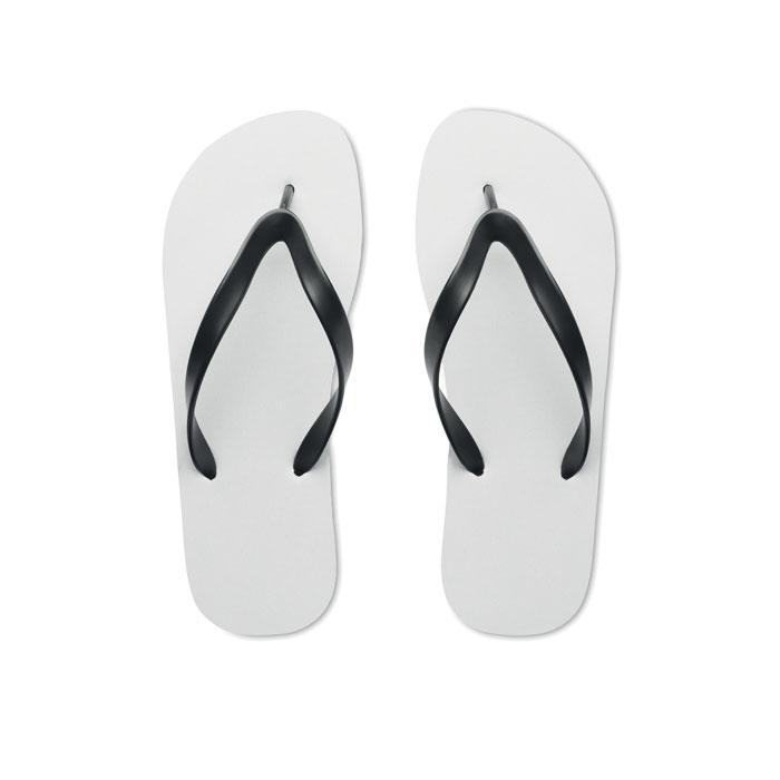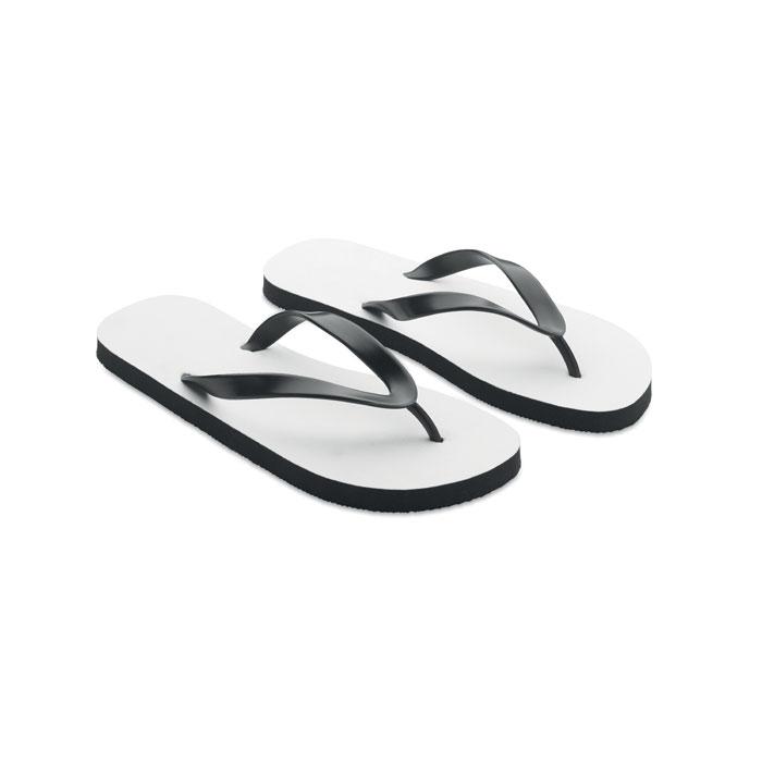 Ontdek deze strandslippers, perfect voor jouw gepersonaliseerde promotie. Je laat ze sublimeren met jouw logo of design in full colour op de polyester toplaag, voor een scherpe en duurzame bedrukking die opvalt.