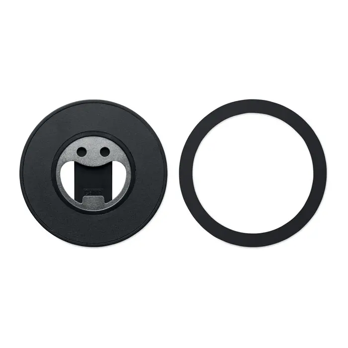De DOSENUNO magnetische telefoonhouder met geïntegreerde flesopener is een veelzijdig relatiegeschenk dat u perfect kunt personaliseren met uw logo. Deze houder bevestigt uw smartphone stevig en handsfree, ideaal voor onderweg of tijdens events. Compatibel met iPhone® 12 en nieuwer, en dankzij de meegeleverde magnetische metalen ring ook geschikt voor andere draadloze oplaadbare toestellen. Gemaakt van robuust ABS-materiaal, combineert hij functionaliteit met promotie: uw merk blijft zichtbaar terwijl uw klanten genieten van het gemak. Bestel in grote hoeveelheden voor optimale zichtbaarheid bij uw doelgroep.