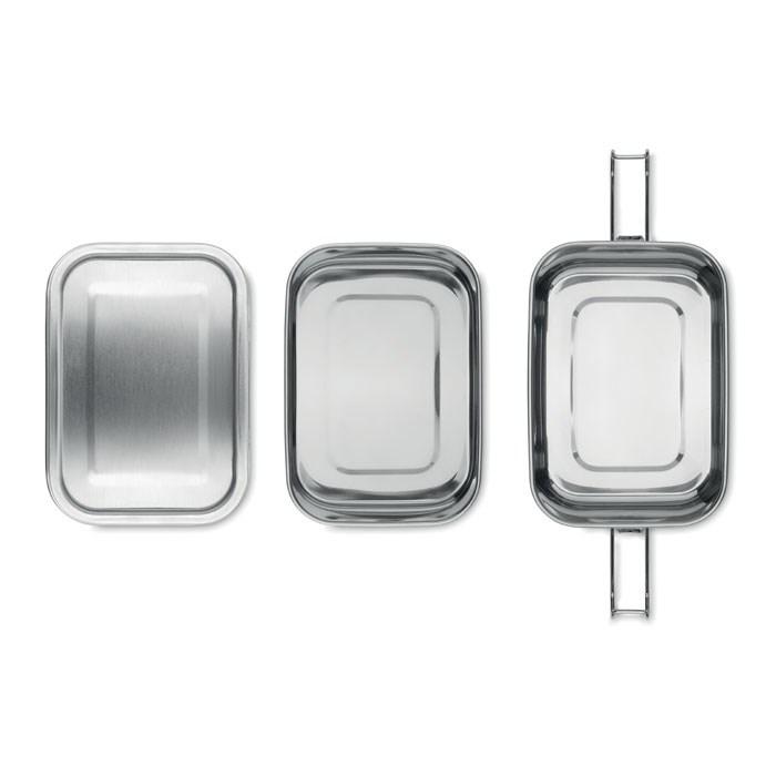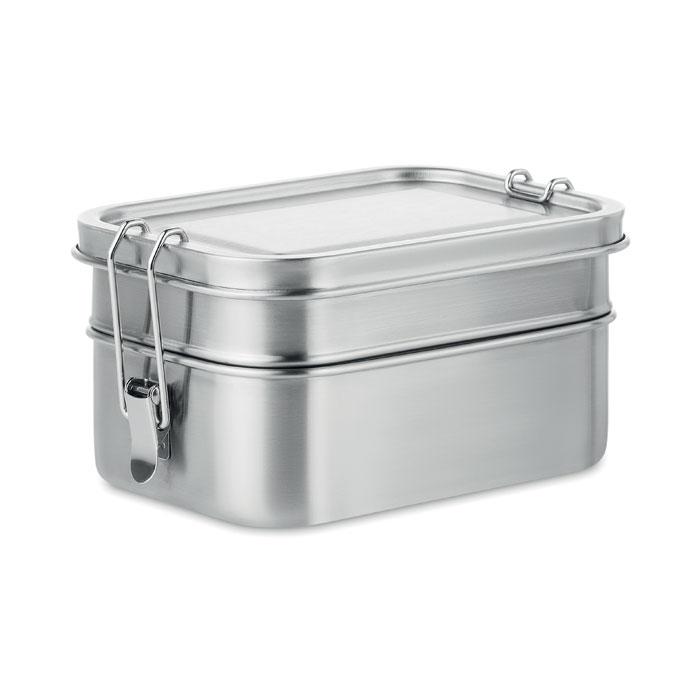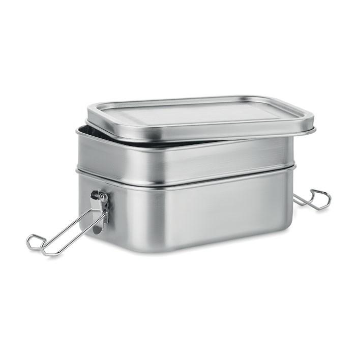 RVS lunchbox met 2 compartimenten en buckle sluiting aan de zijkanten. Inhoud 1200ml.