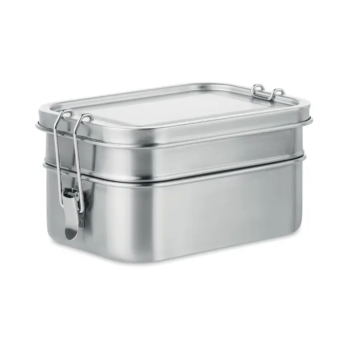 Ontdek de DOUBLE CHAN RVS lunchbox, ideaal als gepersonaliseerd relatiegeschenk voor uw bedrijf. Deze duurzame lunchbox van roestvrij staal biedt twee praktische compartimenten om maaltijden gescheiden te houden, met een stevige buckle sluiting voor veilige afsluiting. Met een ruime inhoud van 1200 ml is hij perfect voor lunch op kantoor of onderweg. Personaliseer hem met uw logo om uw merk te promoten tijdens events of als dank aan klanten. Voordelen: hygiënisch, lekvrij en langdurig inzetbaar, wat bijdraagt aan een professionele indruk en herhaalde zichtbaarheid van uw branding.