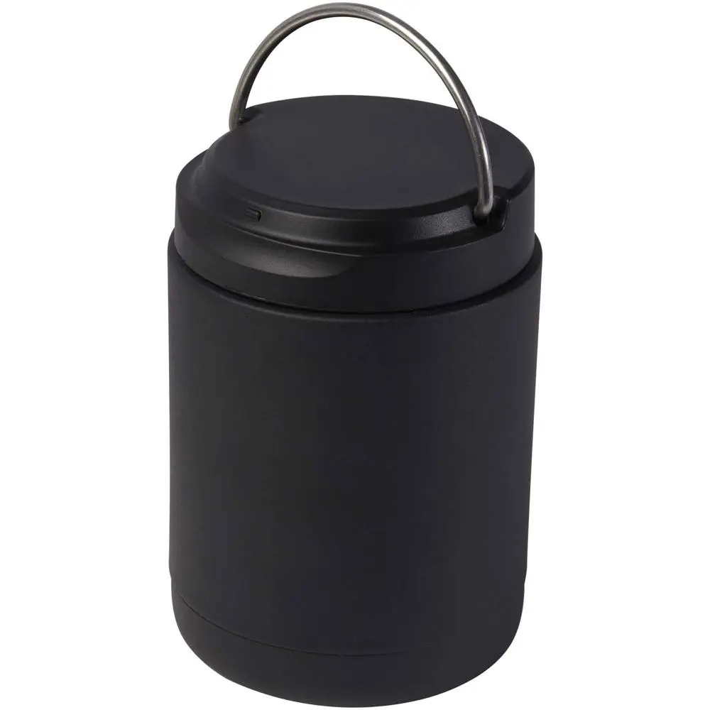 Ontdek de Doveron 500 ml geïsoleerde lunchpot, vervaardigd uit 80% gerecycled roestvrij staal en 20% PP-kunststof. Deze vacuüm geïsoleerde pot houdt uw eten tot 8 uur warm en tot 24 uur koud, ideaal voor drukke dagen op kantoor of tijdens events. Met afmetingen van 14,3 x Ø 9,9 cm past hij perfect in elke tas.