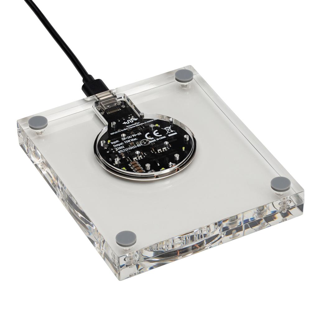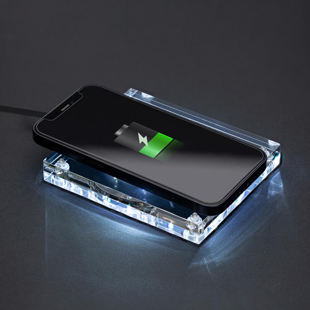 Ontdek de perfecte draadloze oplader voor je marketingacties en events. Je laadt smartphones razendsnel op tot 15 watt, zonder kabels. De zichtbare koperen spoel geeft een stoere industriële retro-look die indruk maakt op je klanten. Vier antislippads houden hem stevig op zijn plek, zelfs op gladde tafels.