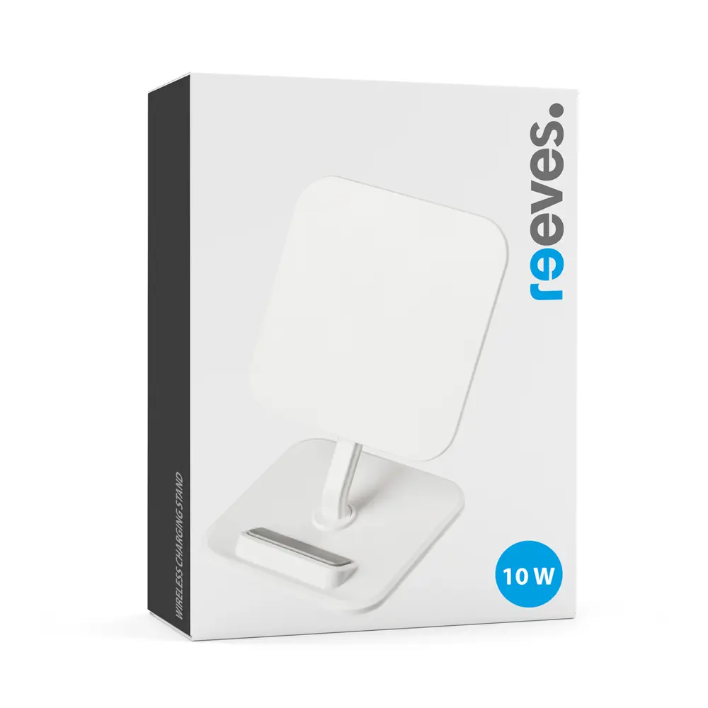 Ontdek de Draadloze oplader Stand REEVES-GIJÓN II, ideaal als gepersonaliseerd relatiegeschenk voor uw marketingacties of events. Deze stijlvolle bureauoplader laadt uw smartphone draadloos op tot 10W, compatibel met de nieuwste apparaten. Dankzij de verstelbare hoogte en klikmechanisme positioneert u uw toestel staand of liggend, en vouwt u het eenvoudig op voor transport.