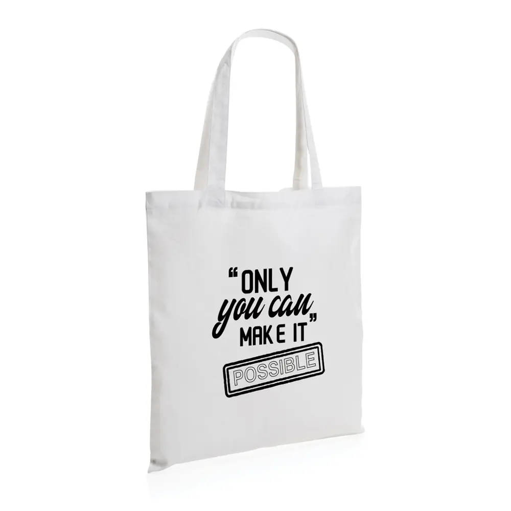 Kiest u voor deze veelzijdige gerecyclede katoenen draagtas, dan draagt u bij aan een groener imago voor uw bedrijf. Met een gewicht van 145 g/m² biedt deze tas een robuuste oplossing voor uw marketingacties en events. Als onderneming of eventorganisator personaliseert u deze tassen eenvoudig met uw logo, wat zorgt voor blijvende zichtbaarheid bij uw klanten.