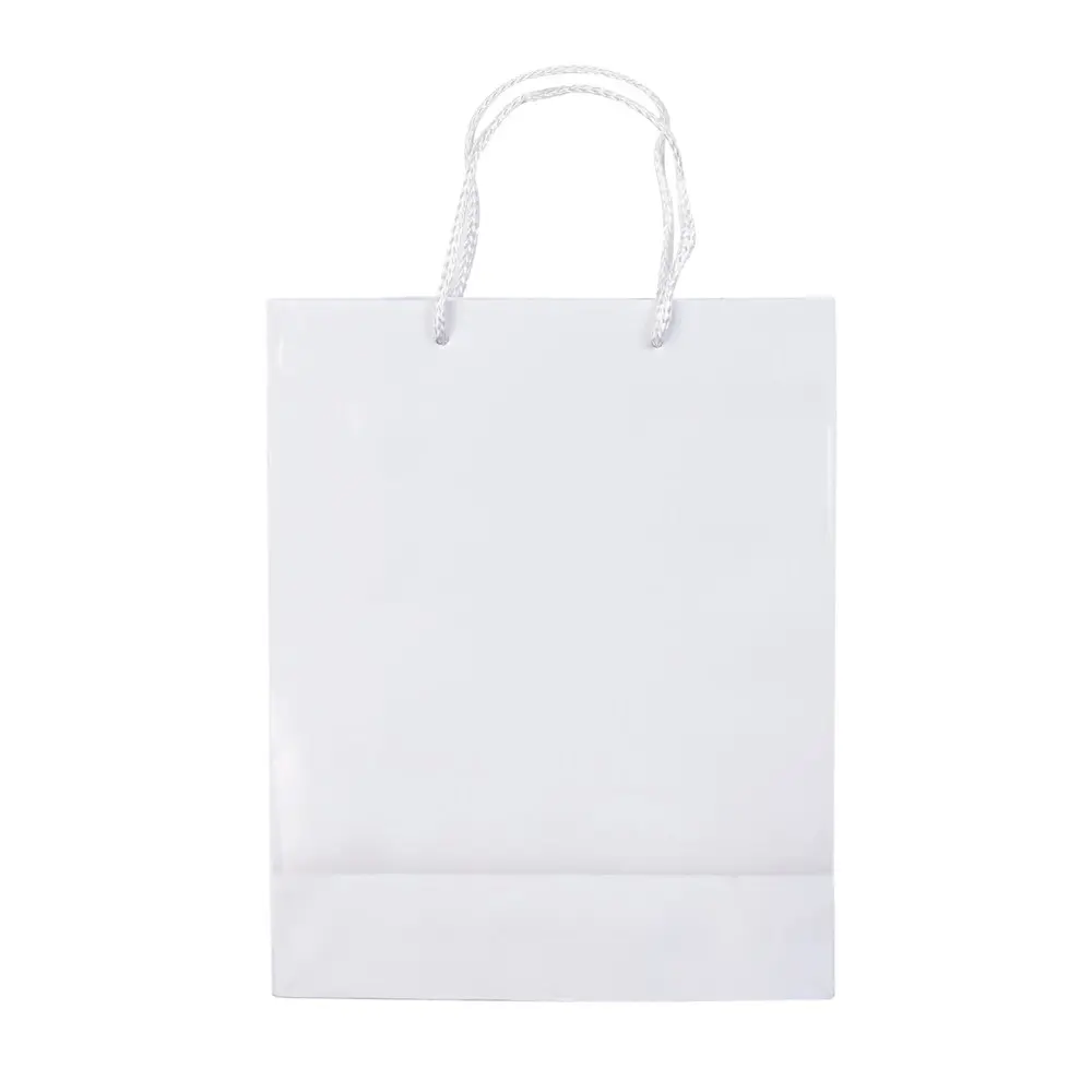 Ontdek onze middelgrote papieren draagtas met hengels van gevlochten touw. Deze stevige tas biedt een groot drukoppervlak aan beide zijden, ideaal voor uw logobedrukking. De glossy laminering zorgt voor een professionele afwerking die opvalt.
