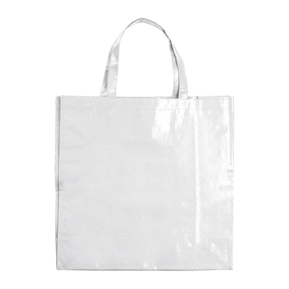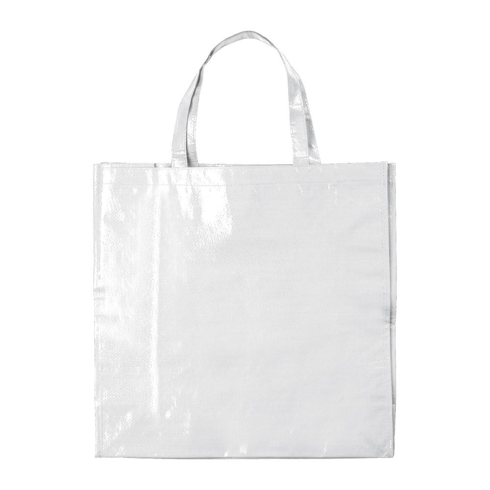 Grote glanzende boodschappen tas van PP woven. Groot drukoppervlak.