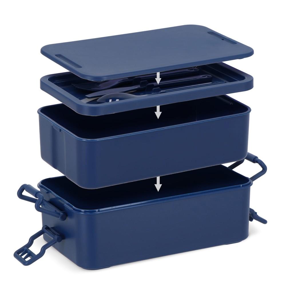 Ontdek deze handige dubbellaagse lunchbox met stevige clips en geïntegreerd bestek. Je houdt je voedsel netjes gescheiden en vers in de twee aparte lagen, ideaal voor onderweg of op kantoor. Het compacte formaat past perfect in je tas.