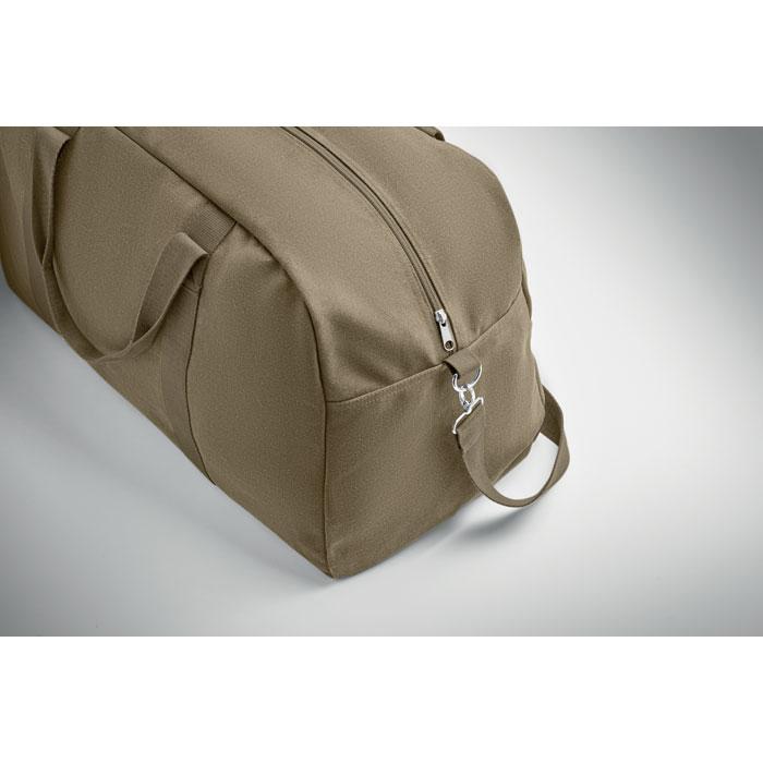 Je zoekt een duurzame reistas die je merk langdurig promoot? Onze Reistas 450 gr/m² van gerecyclede stoffen (60% gerecycled katoen en 40% gerecycled polyester) is ideaal als gepersonaliseerd relatiegeschenk. Met verstelbare en afneembare katoenen schouderriem biedt deze sporttas maximaal comfort en flexibiliteit voor je klanten op events of onderweg.