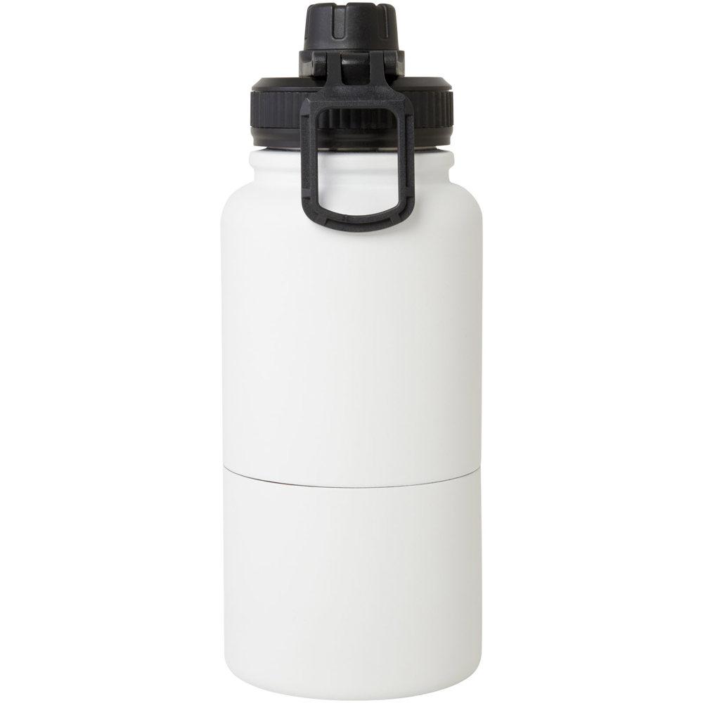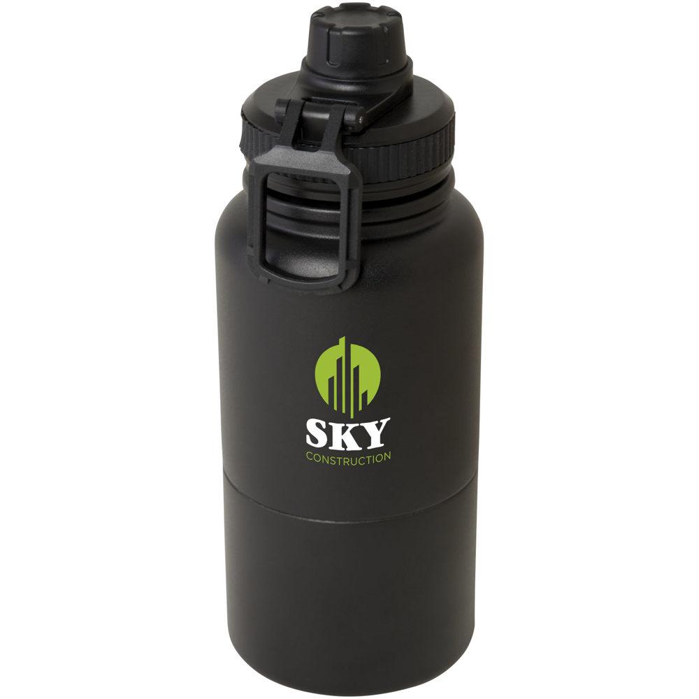 Ontdek de Dupeca 840 ml geïsoleerde fles van roestvrijstaal, jouw ideale gepersonaliseerde relatiegeschenk met logobedrukking. Deze multifunctionele, RCS-gecertificeerde fles combineert een koperen geïsoleerde thermoskan van 530 ml die dranken urenlang warm of koud houdt, met een dubbelwandige opslagcontainer van 340 ml onderaan. Gebruik die als beker voor koude dranken of om snacks en kleine spullen in te bewaren – perfect voor events en promotie.
