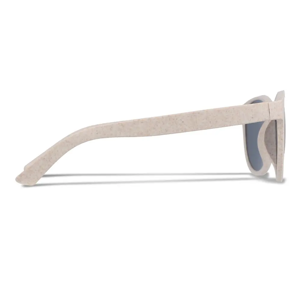 Ontdek de eco zonnebril Earth, vervaardigd uit 60% plantaardige tarwestrovezels. Dit materiaal geeft de bril een authentieke, natuurlijke uitstraling die perfect past bij uw duurzame bedrijfsimago. De glazen bieden een UV400-filter voor optimale bescherming tegen schadelijke zonnestralen, zodat uw relaties veilig kunnen genieten van de zon.