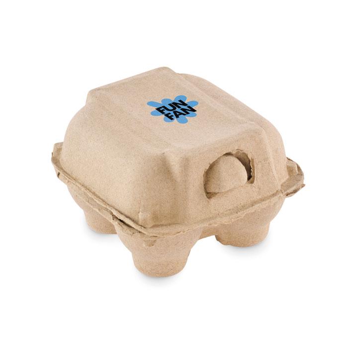 4 houten paaseieren verfset met 4 watergedragen verfkleuren en 1 kwast in een kartonnen eierdoos.
