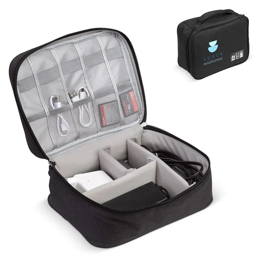 Ontdek onze Elektronica Organizer, het ideale relatiegeschenk om elektronica en accessoires veilig en georganiseerd te vervoeren. Dankzij de volledige schuimvulling en flexibele schotjes biedt deze organizer optimale bescherming tegen stoten en krassen, zodat uw waardevolle apparaten altijd in topconditie blijven.