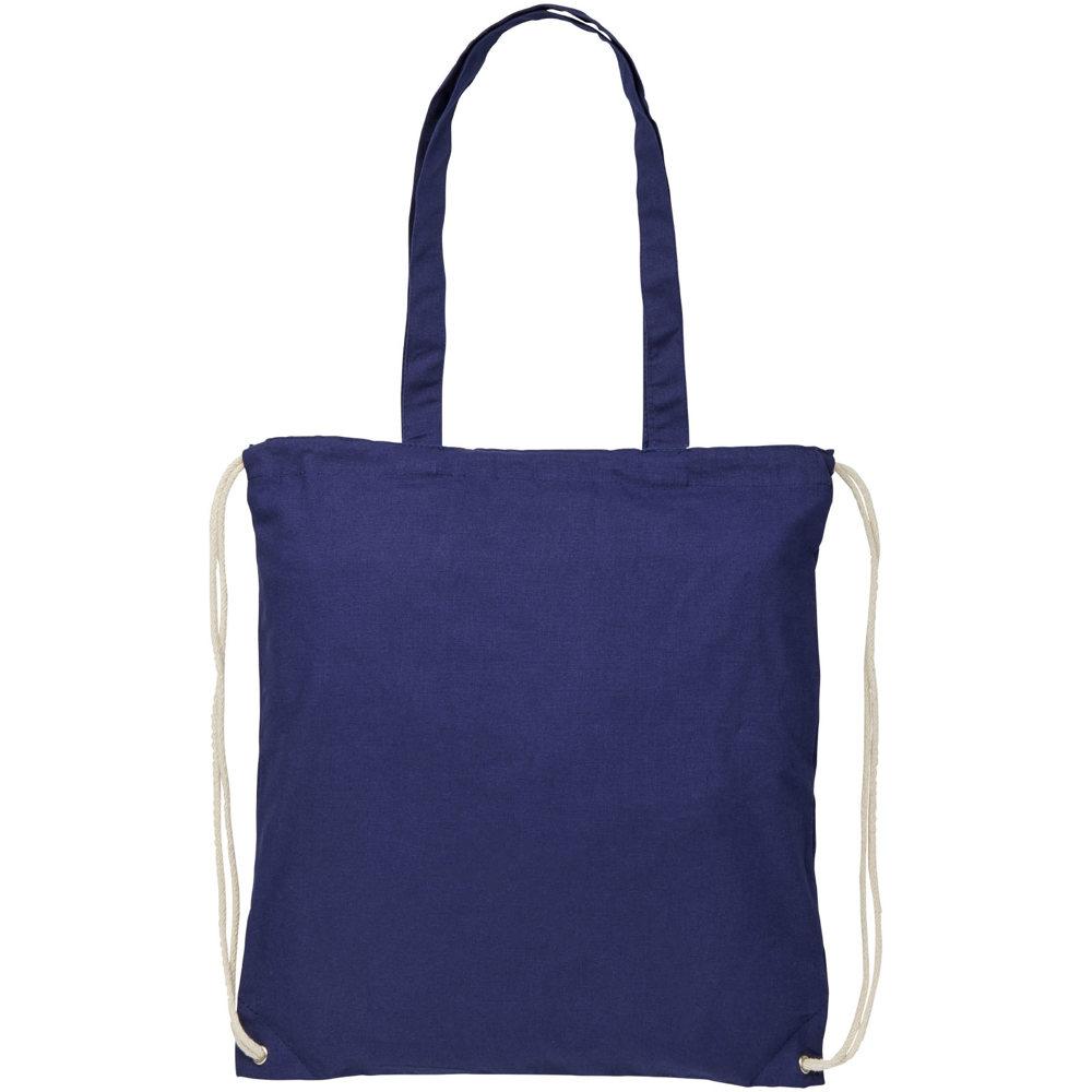 Multifunctionele katoenen tas met lange handgrepen en trekkoord die als schoudertas of rugzak kan worden gedragen. Groot hoofdvak met trekkoordsluiting. Voorzien van twee uitklapbare handgrepen met een lengte van 31 cm. Capaciteit: 6 l, weerstand tot 5 kg gewicht.