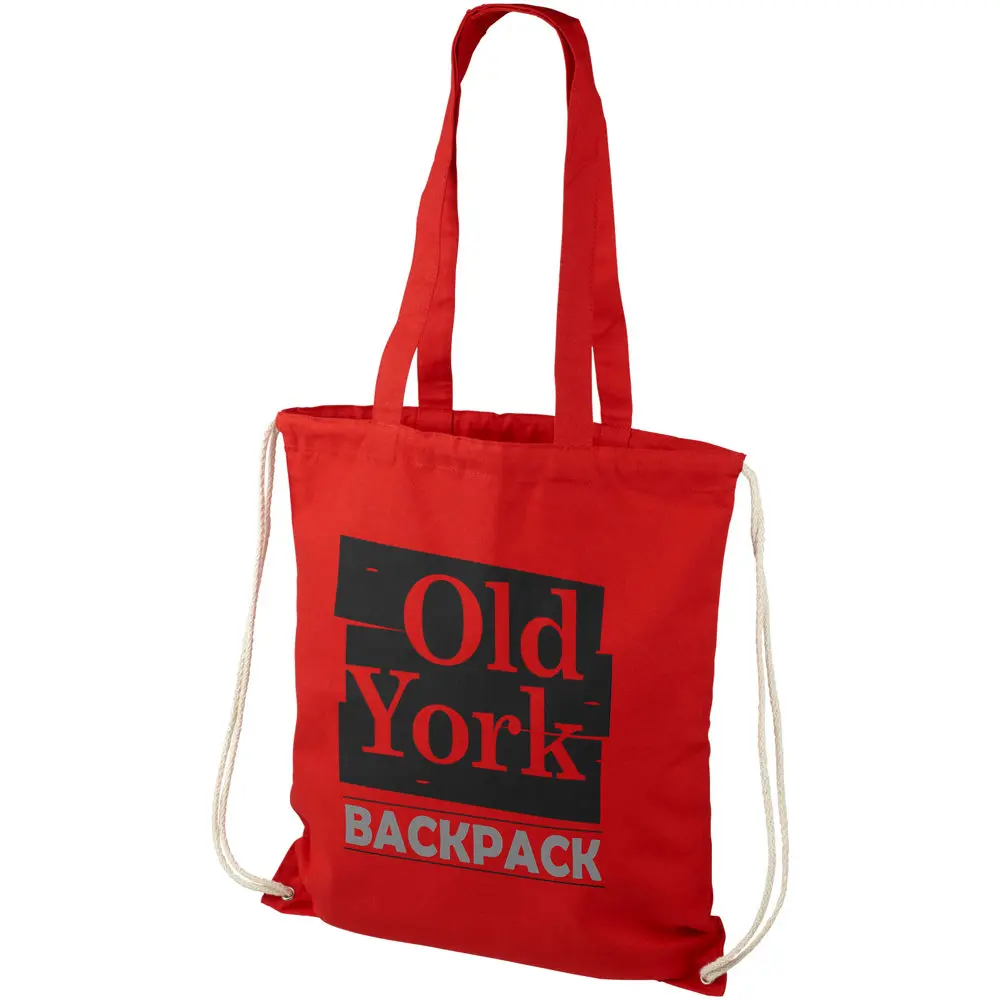 Ontdek de veelzijdige eigenschappen van deze katoenen rugzak, ideaal als relatiegeschenk voor uw marketingcampagnes of events. Met een trekkoordsluiting en lange handgrepen transformeert de tas eenvoudig van schoudertas naar rugzak, wat hem perfect maakt voor dagelijks gebruik door uw klanten.