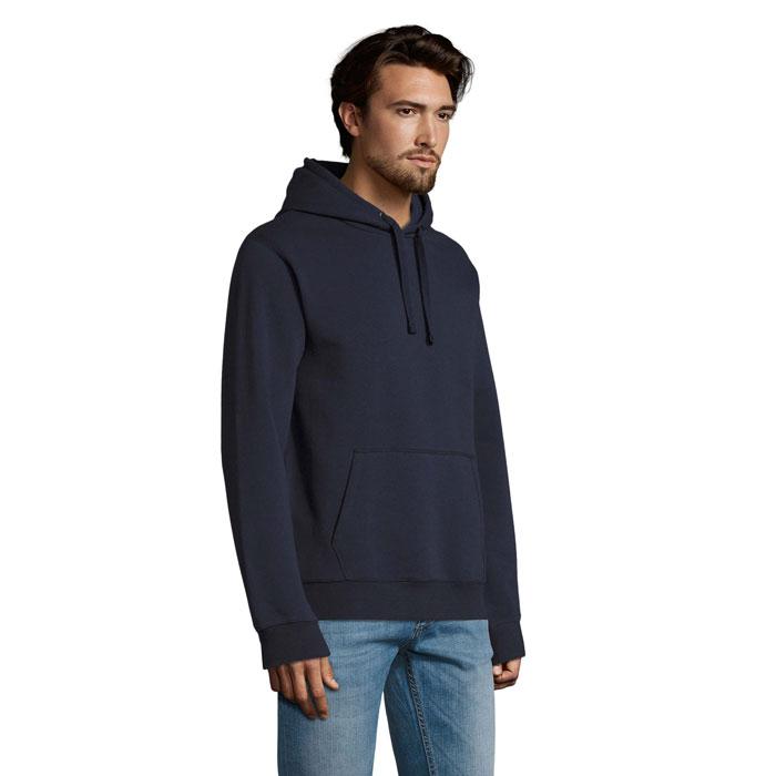 Je logo springt er stralend uit op dit sweatshirt met capuchon, buidelzak, getapete hals en halve maan binnenkraag. De gevoerde capuchon met trekkoord en 2x2 geribde manchetten en zoom zorgen voor een stijlvolle, casual look die je klanten waarderen tijdens events of als relatiegeschenk.