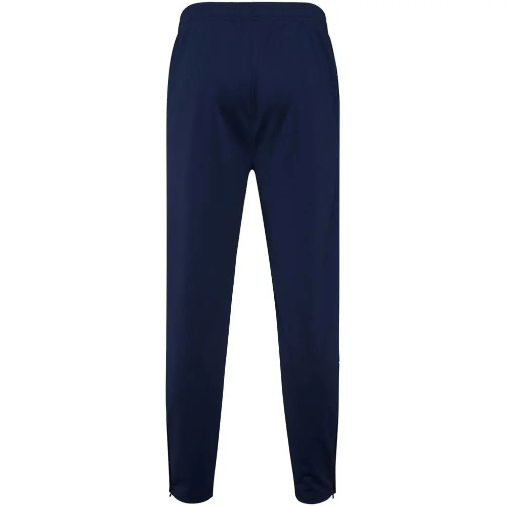 Het jack beschikt over een hoge kraag, centrale rits, zijzakken en geribde manchetten en taille voor een optimale pasvorm. De broek heeft een elastische tailleband met trekkoord en ritssplit aan de zoom, wat zorgt voor makkelijk aan- en uittrekken.