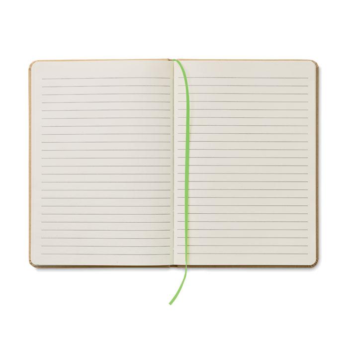 A5 notitieboek met harde gerecyclede kartonnen kaft. Ingebonden. 160 pagina's gelinieerd gerecycled papier (80 vellen). Elastische sluitingsband, bladwijzer met leeslint. FSC®-certified | FSC MIX CREDIT, P7.1, FSC-C213206
