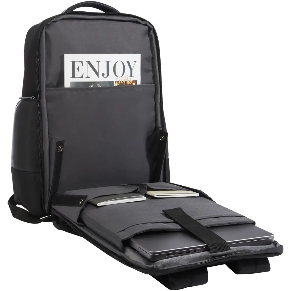 Ontdek de Expedition Pro 15,6 inch laptoprugzak van 25 liter, een betrouwbare partner voor uw team onderweg. Deze slanke en stevige rugzak, gemaakt van GRS-gecertificeerd gerecycled polyester (900D RPET) met waterafstotende eigenschappen, combineert functionaliteit met duurzaamheid. Ideaal als gepersonaliseerd relatiegeschenk met uw logo, om uw merk te versterken tijdens events of bij klantenbezoeken. Met premium PU-elementen en RPET-voering voldoet deze tas aan hoge normen voor milieu en kwaliteit, zonder PVC.
