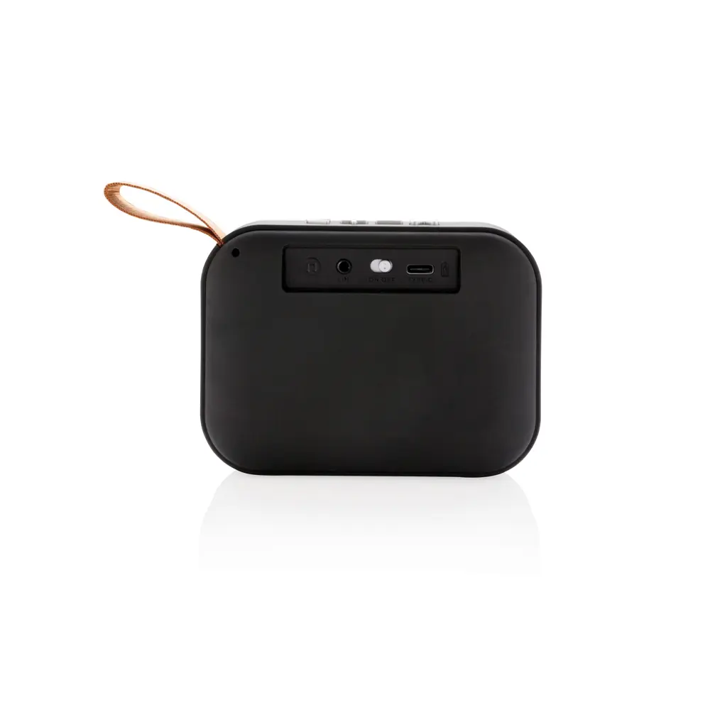 Ontdek de Fabric Trend draadloze 3W-speaker, ideaal als gepersonaliseerd relatiegeschenk voor uw marketingcampagnes of events. Met een robuuste ABS-body, soft-touch afwerking en stoffen rooster biedt deze speaker een premium uitstraling, terwijl rubberen strips voor optimale grip en superieure geluidskwaliteit zorgen. De ingebouwde 300 mAh Li-poly batterij levert tot 3 uur speelplezier op één oplaadbeurt via USB-C, met Bluetooth 5.0 voor een stabiele verbinding tot 10 meter. Compatibel met alle smartphones, is dit de perfecte manier om uw merk te promoten bij klanten – personaliseer met uw logo voor blijvende indruk. Handig in geschenkverpakking, voldoet aan strenge veiligheidsnormen voor zorgeloos gebruik.