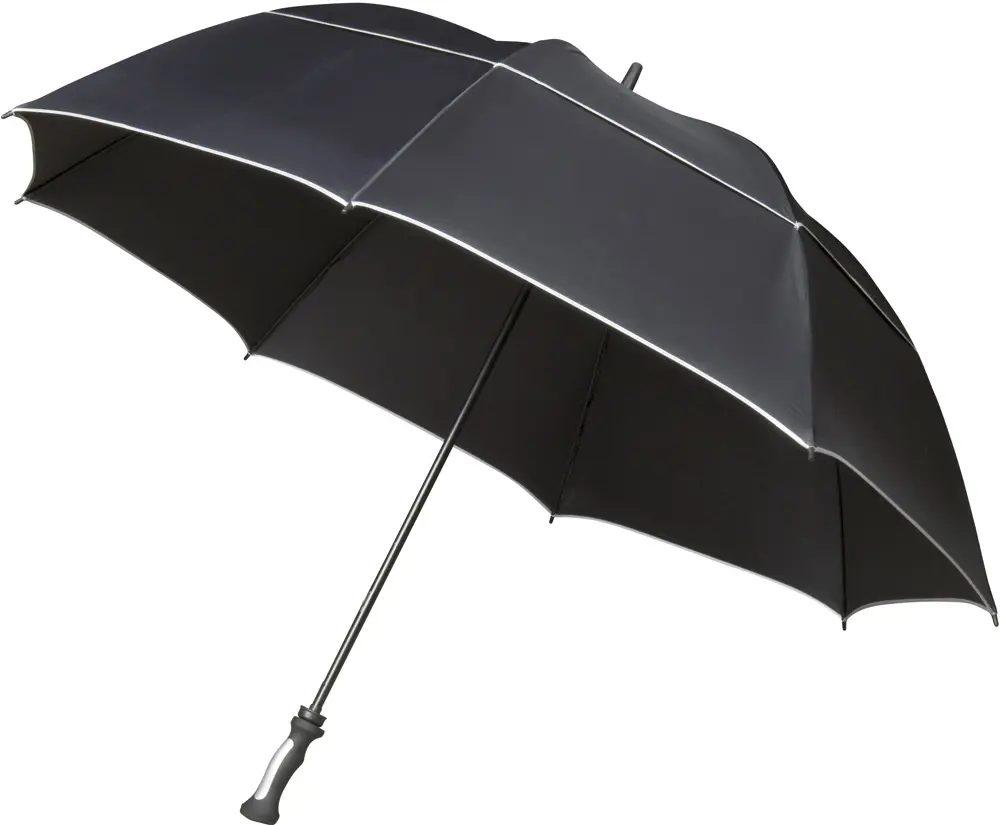 De FALCONE stormparaplu XXL met een diameter van 140 cm biedt uw merk maximale zichtbaarheid dankzij de ruime polyester pongee canopy, ideaal voor logobedrukking. Dit windproof model met extra sterk dubbel glasfiber frame en stok beschermt betrouwbaar tegen zware wind, terwijl het rechte rubber gecoate handvat een comfortabele grip garandeert. Met 8 panelen (84,5 x 52 x 77 cm) en zilverkleurige piping creëert u een premium uitstraling voor uw events of als relatiegeschenk. De bijgeleverde PVC foedraal en polybag vergemakkelijken transport en opslag. Handopening zorgt voor eenvoudige bediening. Personaliseer deze robuuste golfparaplu en versterk uw bedrijfsimago effectief.