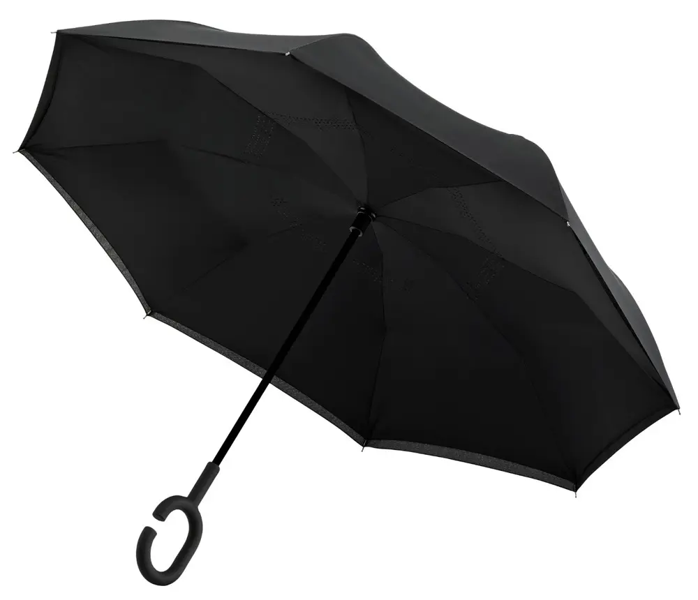 Deze paraplu opent en sluit binnenstebuiten, waardoor de natte buitenkant niet in contact komt met uw kleding of omgeving. U plaatst hem eenvoudig rechtop op de grond zonder steun, dankzij het speciale mechanisme. De windproof constructie met glasvezel frame beschermt tegen sterke wind, terwijl de C-vormige greep handen vrij houdt voor andere taken. Zo biedt deze paraplu niet alleen bescherming, maar ook praktisch comfort tijdens regenachtige dagen op uw events.